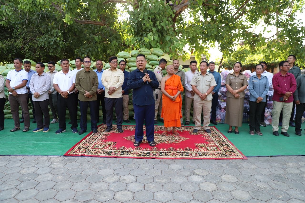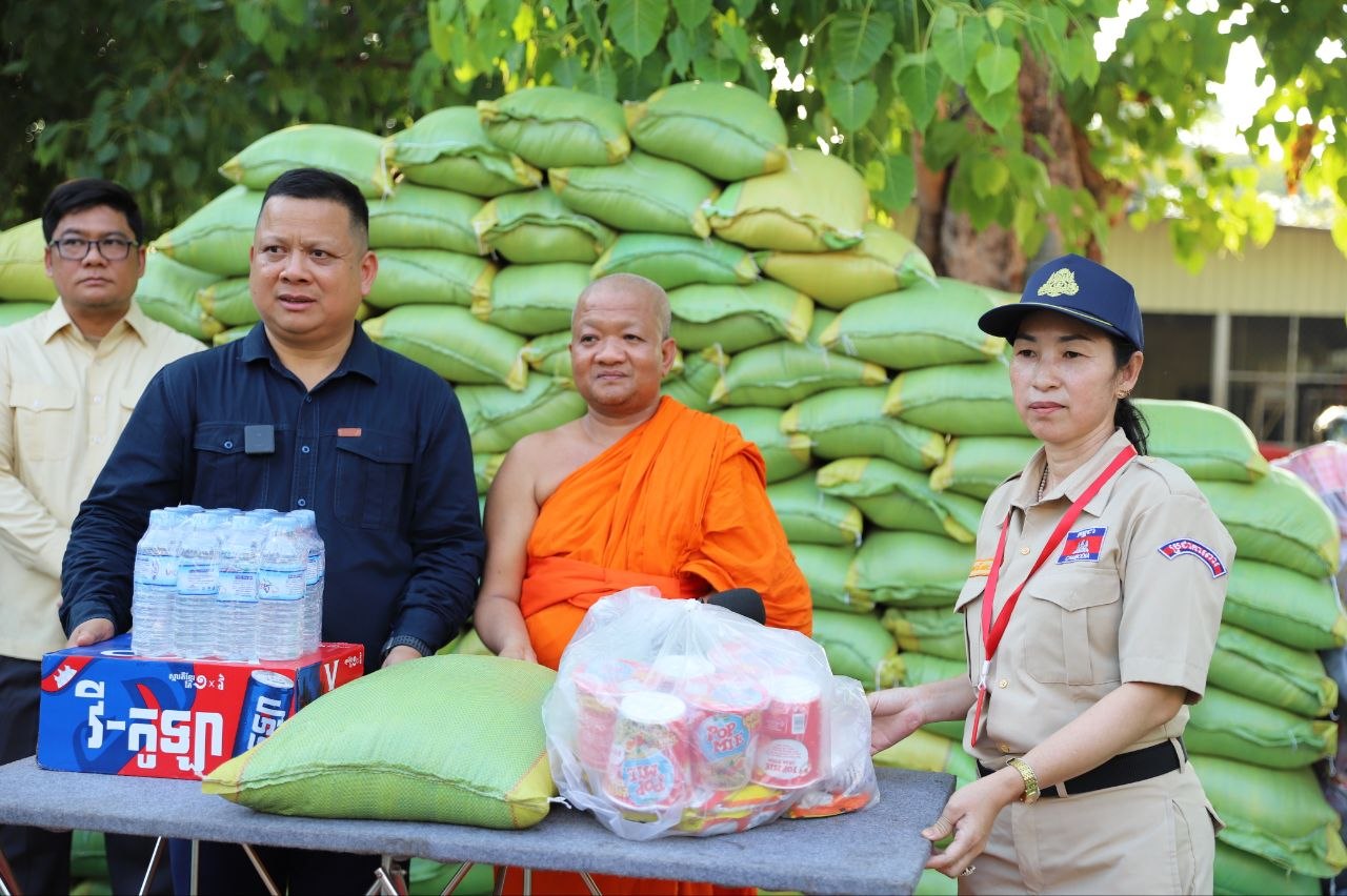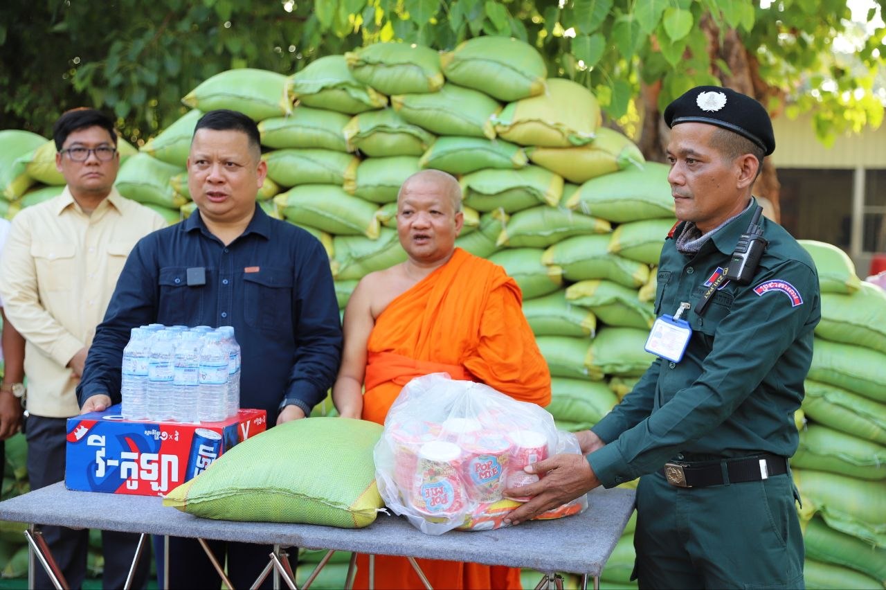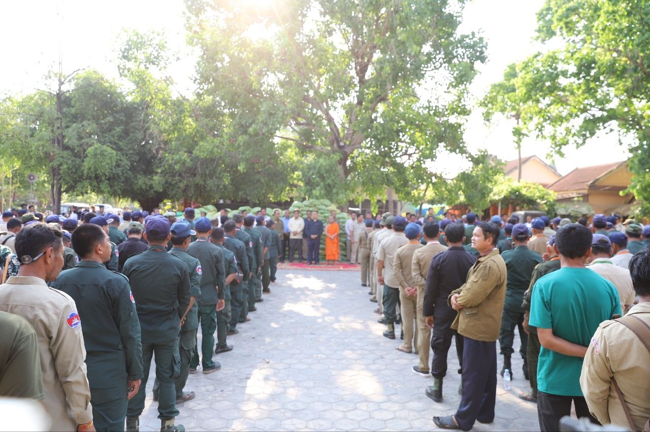 (សៀមរាប)៖ ប្រជាការពារភូមិប្រមាណជាង៤០០នាក់ មកពី៨ភូមិ នៅក្នុងសង្កាត់គោកចក ក្រុងសៀមរាប នារសៀលថ្ងៃទី០៥ ខែមេសា ឆ្នាំ២០២៦ បានទទួលអំណោយជាស្បៀងអាហារពីព្រះគ្រូវិចិត្រវង្សា ហែម គឹមសាន ញាតិធម្មោ ព្រះគ្រូចៅអធិការវត្តប្រាសាទគោកចក និងជាទីប្រឹក្សាពុទ្ធកសមាគមកម្ពុជរដ្ឋ ដោយមានការចូលរួមពីលោកឧត្តមសេនីយ៍ទោ ហួត សុធី ស្នងការនគរបាលខេត្តសៀមរាប និងអាជ្ញាធរមូលដ្ឋានផងដែរ។