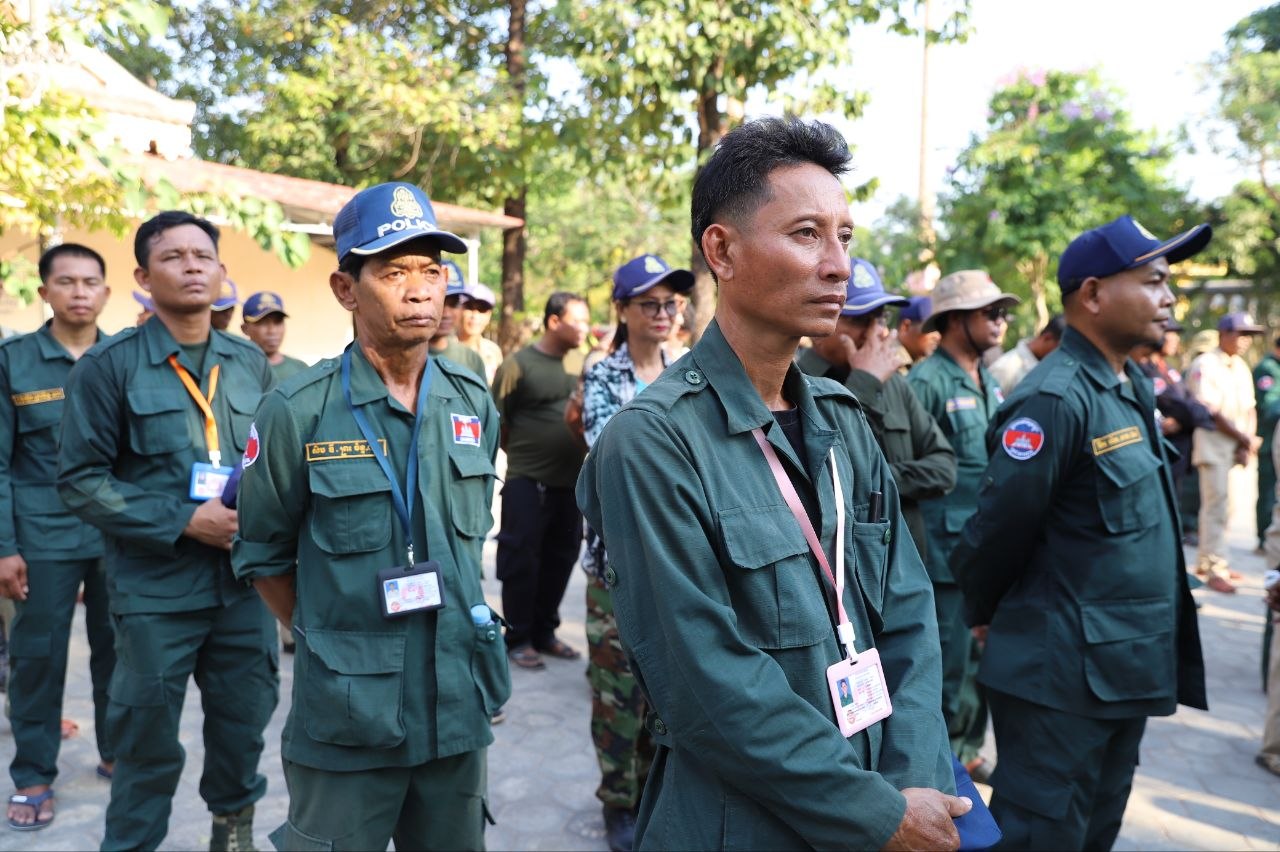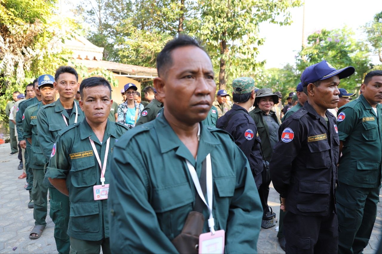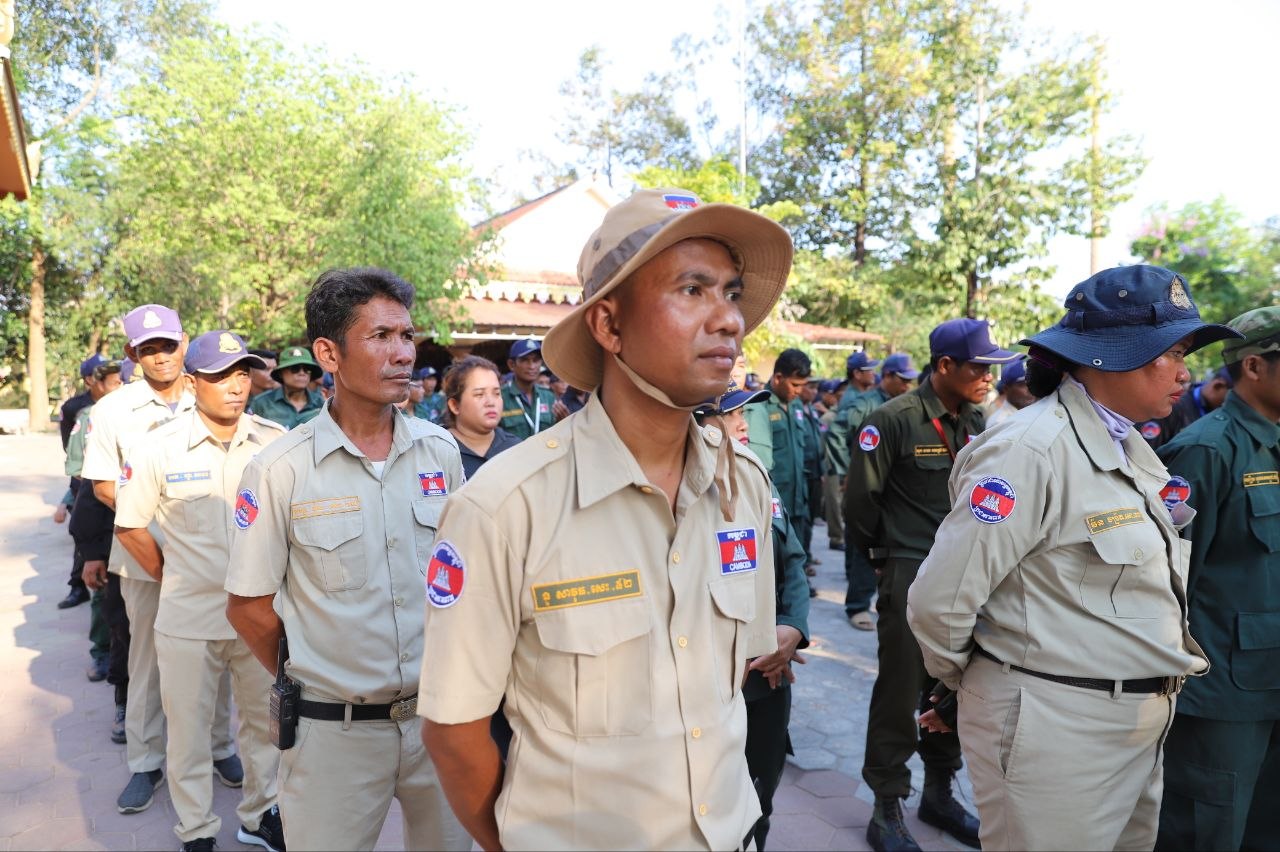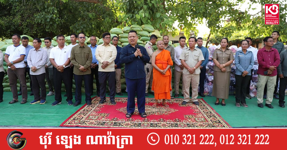 (សៀមរាប)៖ ប្រជាការពារភូមិប្រមាណជាង៤០០នាក់ មកពី៨ភូមិ នៅក្នុងសង្កាត់គោកចក ក្រុងសៀមរាប នារសៀលថ្ងៃទី០៥ ខែមេសា ឆ្នាំ២០២៦ បានទទួលអំណោយជាស្បៀងអាហារពីព្រះគ្រូវិចិត្រវង្សា ហែម គឹមសាន ញាតិធម្មោ ព្រះគ្រូចៅអធិការវត្តប្រាសាទគោកចក និងជាទីប្រឹក្សាពុទ្ធកសមាគមកម្ពុជរដ្ឋ ដោយមានការចូលរួមពីលោកឧត្តមសេនីយ៍ទោ ហួត សុធី ស្នងការនគរបាលខេត្តសៀមរាប និងអាជ្ញាធរមូលដ្ឋានផងដែរ។