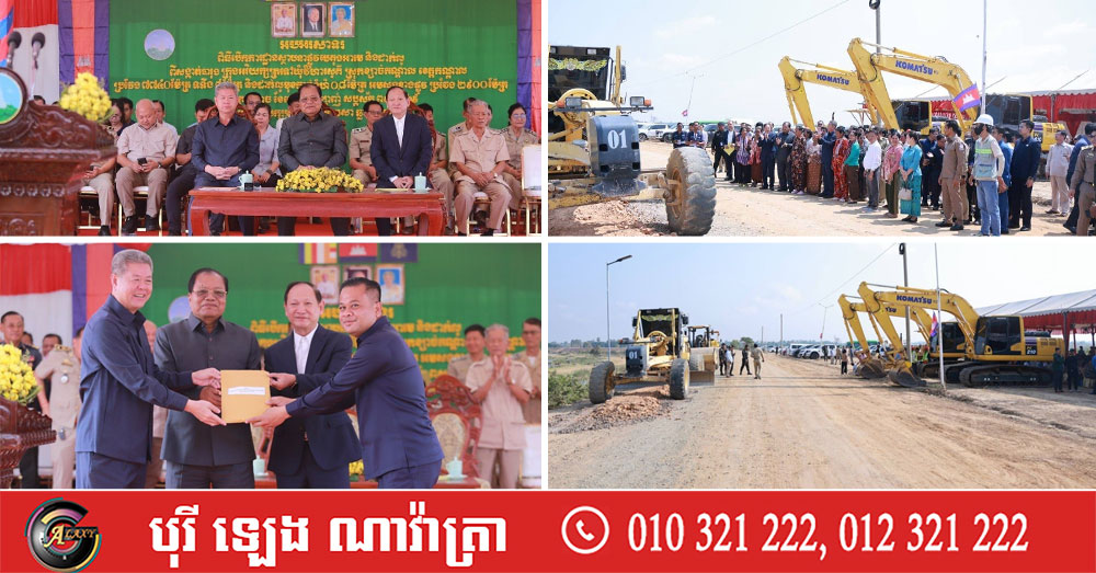 (កណ្ដាល)៖ ដោយមើលឃើញពីការលំបាកក្នុងការធ្វើដំណើរមិនថារដូវប្រាំង ឬរដូវវស្សា និងជាតំរូវការចាំបាច់របស់ប្រជាពលរដ្ឋនៅក្នុងមូលដ្ឋាន រដ្ឋបាលខេត្តកណ្ដាល បានរៀបចំពិធីបើកការដ្ឋានស្ថាបនាផ្លូវបេតុងថ្មី ប្រវែង ៧,៧៤០ម៉ែត្រ ទទឹង ៨ម៉ែត្រ និងដាក់លូអមសងខាងផ្លូវ មុខកាត់ ០.៨ម៉ែត្រ ប្រវែង ២,៩០០ម៉ែត្រ ពីភូមិខ្នោការ សង្កាត់បារុង ក្រុងអរិយក្សត្រ ទៅភូមិស្វាយមាស ឃុំវិហារសួគ៌ ស្រុកខ្សាច់កណ្តាល។