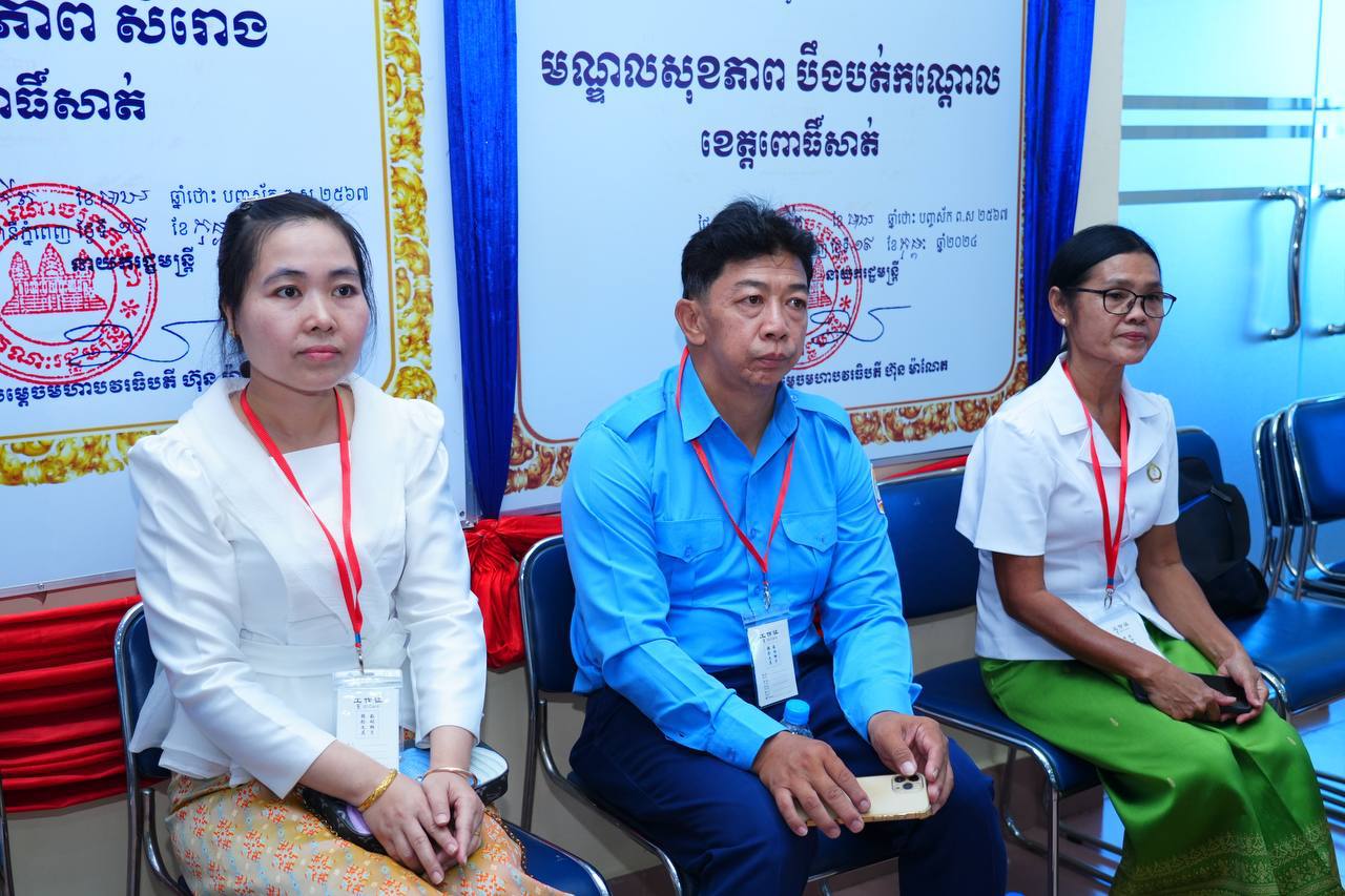 លោកវេជ្ជបណ្ឌិត តឹក សុភាព ប្រធានមន្ទីរសុខាភិបាល នៃរដ្ឋបាលខេត្តពោធិ៍សាត់ បានជម្រាបជូនវឌ្ឍនភាពវិស័យសុខាភិបាល ដោយបច្ចុប្បន្នមានបុគ្គលិកចំនួន៨០៤នាក់ ក្នុងនោះវេជ្ជបណ្ឌិត៦៤នាក់ គ្រូពេទ្យមធ្យម៩នាក់ ឆ្មបមធ្យម ២៥៩នាក់ គិ.ធម្យម២៨២នាក់ ក្រៅពីនោះ ឆ្មបបឋម ទីពិសោធន៍ ឱសថការី និងមន្ត្រីជំនាញមួយចំនួនទៀត បាននឹងកំពុងបំពេញការងារតាមជំនាញដូចជា កម្មវិធីសុខភាព បន្តពូជ សុខភាពមាតា ទារក និងកុមារ ប្រយុទ្ធប្រឆាំងជំងឺឆ្លង ជំងឺគ្រុនចាញ់ ជំរបេង ជំងឺហង់សិន និងជំងឺដទៃទៀត ទទួលបានលទ្ធផលល្អប្រសើរ។