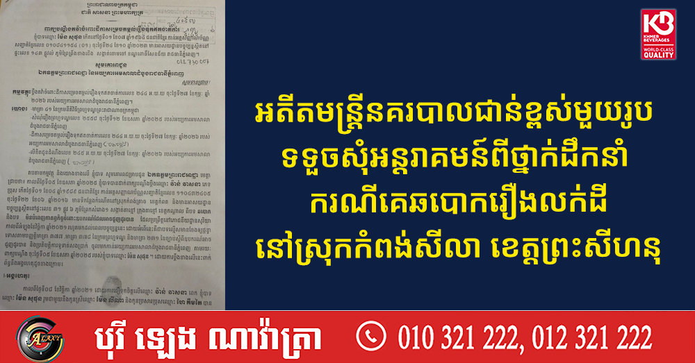 អតីតមន្ត្រីនគរបាលជាន់ខ្ពស់មួយរូប ទទួចសុំអន្តរាគមន៍ពីថ្នាក់ដឹកនាំ ករណីគេឆបោករឿងលក់ដីនៅស្រុកកំពង់សីលា ខេត្តព្រះសីហនុ