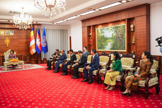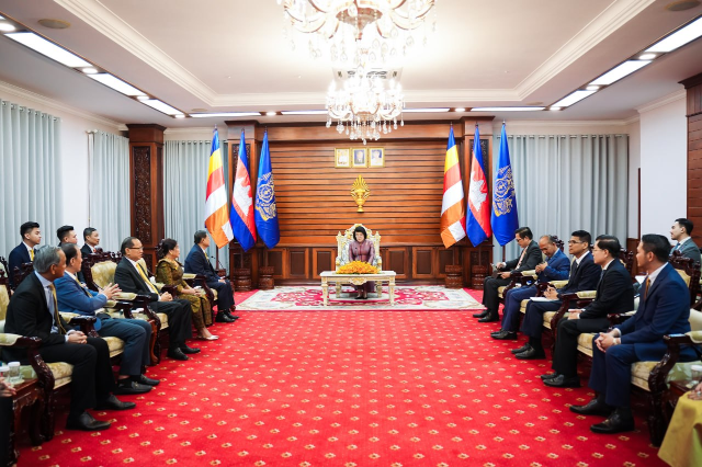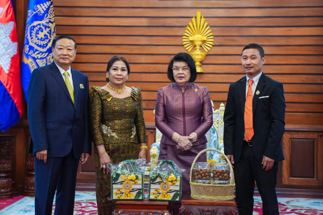 ឧកញ៉ា តែ តាំងប៉ ដឹកនាំក្រុមប្រឹក្សាភិបាល សម្ដែងការគួរសម សម្តេចមហារដ្ឋសភាធិការធិបតី ឃួន សុដារី ប្រធានរដ្ឋសភានៃព្រះរាជាណាចក្រកម្ពុជា ក្នងឱកាសបុណ្យចូលឆ្នាំថ្មីប្រពៃណីជាតិខ្មែរ និងគោរពរាយការណ៍ស្ថានភាពទូទៅរបស់សមាគម