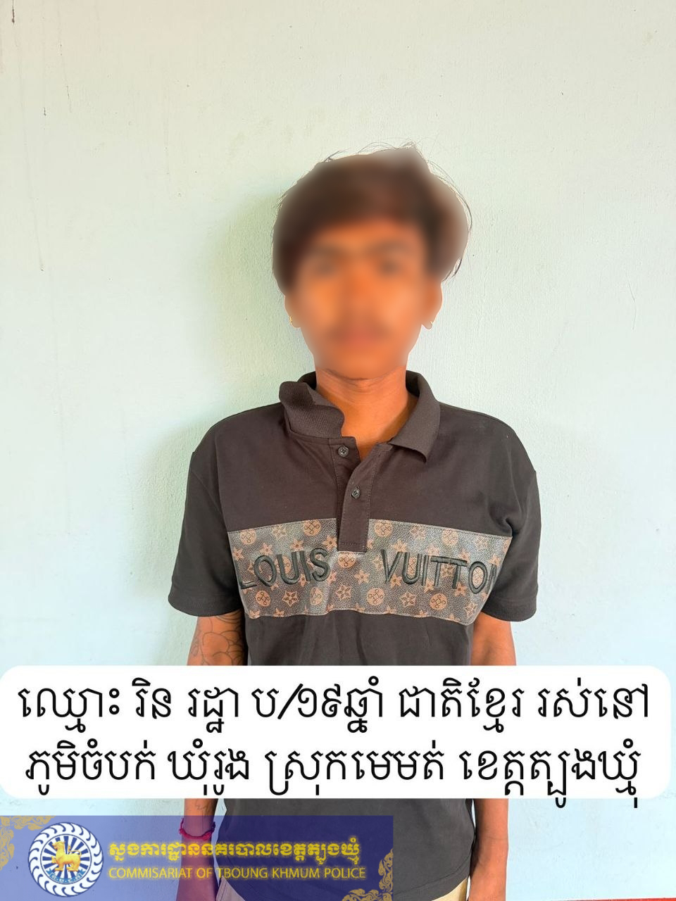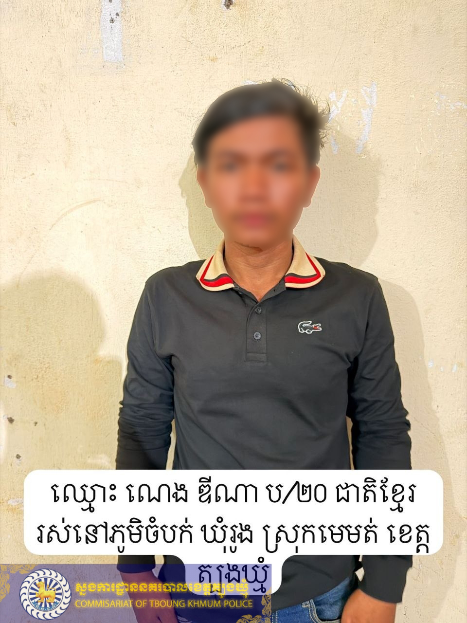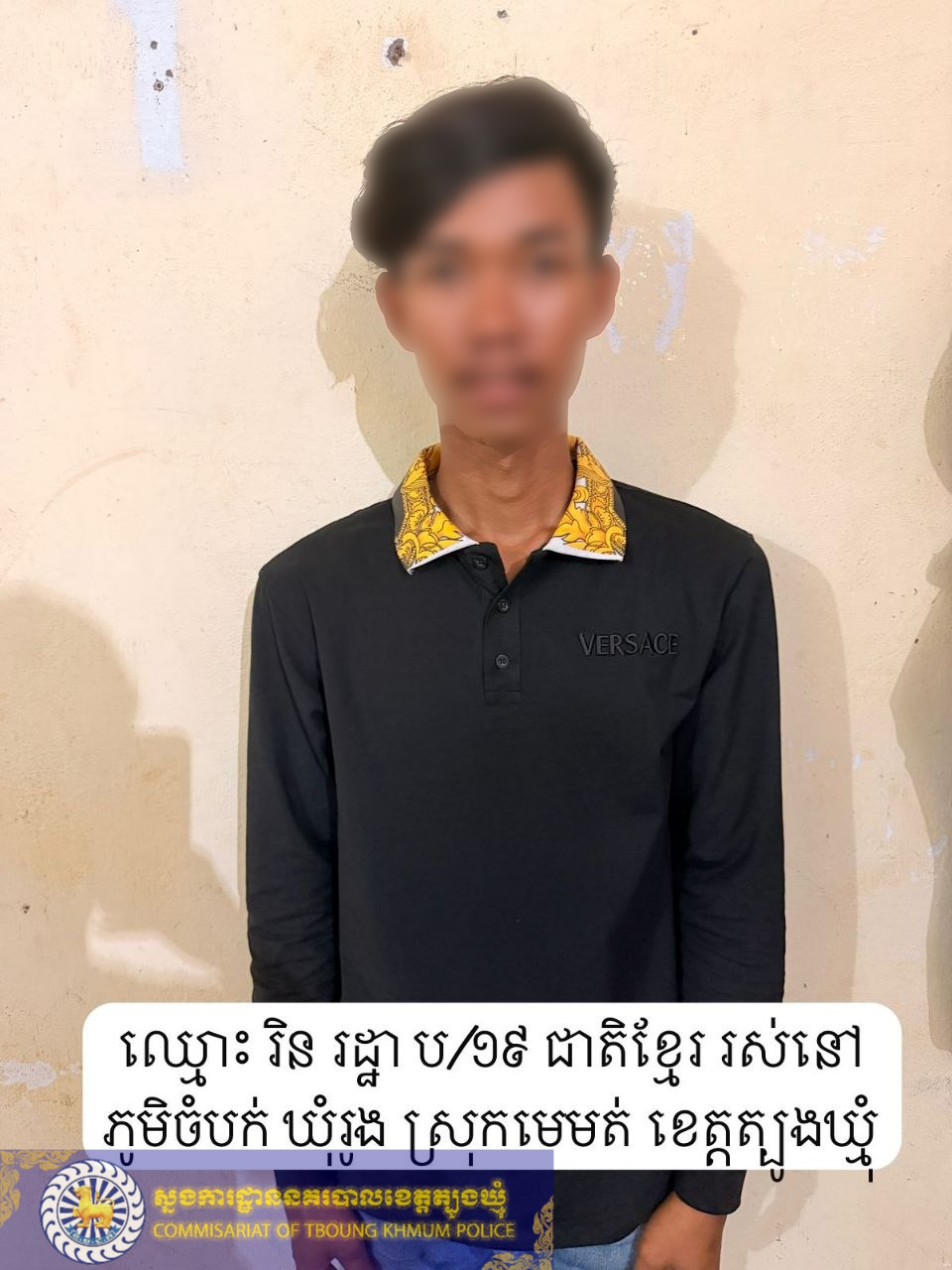 (ត្បូងឃ្មុំ)៖ ដោយអនុវត្តតាមបទបញ្ជាយ៉ាងម៉ឺងម៉ាត់ របស់នាយឧត្តមសេនីយ៍ ស ថេត អគ្គស្នងការនគរបាលជាតិ និងលោក ប៉ែន កុសល្យ អភិបាលខេត្ត និងជាប្រធានគណៈបញ្ជាការឯកភាពរដ្ឋបាលខេត្តត្បូងឃ្មុំ និងការបញ្ជាដឹកនាំផ្ទាល់របស់លោកឧត្តមសេនីយ៍ទោ ចិន នី ស្នងការនគរបាលខេត្តត្បូងឃ្មុំ នគរបាលបានធ្វើការស៊ើបអង្កេតស្រាវជ្រាវ និងបង្រ្កាប ករណីហិង្សាដោយចេតនា និងធ្វើឲ្យខូចខាតដោយចេតនា បង្កដោយក្មេងទំនើង។