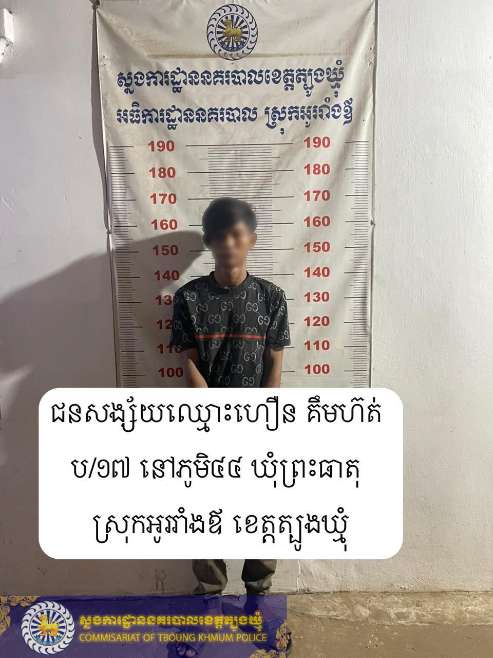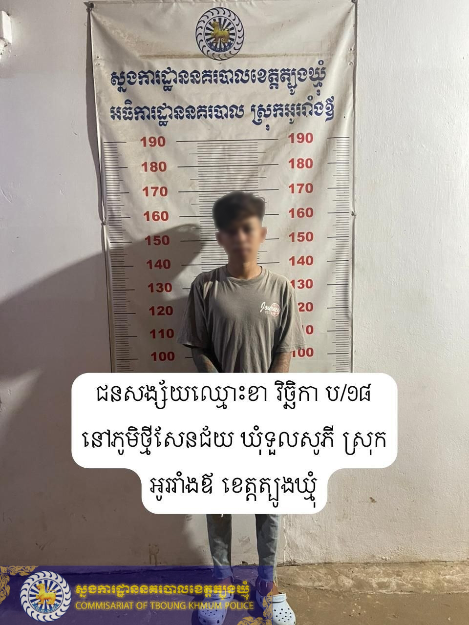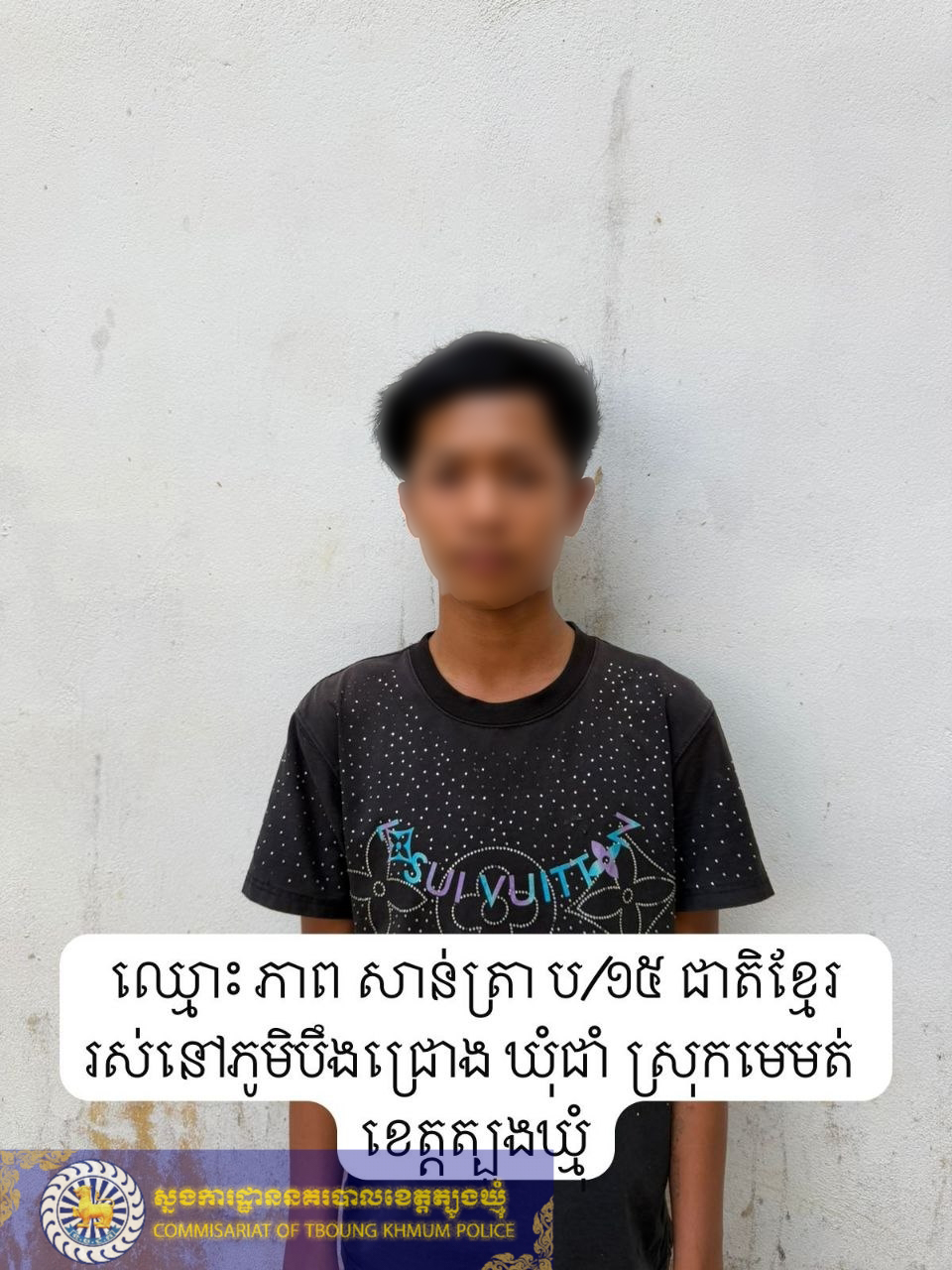 (ត្បូងឃ្មុំ)៖ ដោយអនុវត្តតាមបទបញ្ជាយ៉ាងម៉ឺងម៉ាត់ របស់នាយឧត្តមសេនីយ៍ ស ថេត អគ្គស្នងការនគរបាលជាតិ និងលោក ប៉ែន កុសល្យ អភិបាលខេត្ត និងជាប្រធានគណៈបញ្ជាការឯកភាពរដ្ឋបាលខេត្តត្បូងឃ្មុំ និងការបញ្ជាដឹកនាំផ្ទាល់របស់លោកឧត្តមសេនីយ៍ទោ ចិន នី ស្នងការនគរបាលខេត្តត្បូងឃ្មុំ នគរបាលបានធ្វើការស៊ើបអង្កេតស្រាវជ្រាវ និងបង្រ្កាប ករណីហិង្សាដោយចេតនា និងធ្វើឲ្យខូចខាតដោយចេតនា បង្កដោយក្មេងទំនើង។