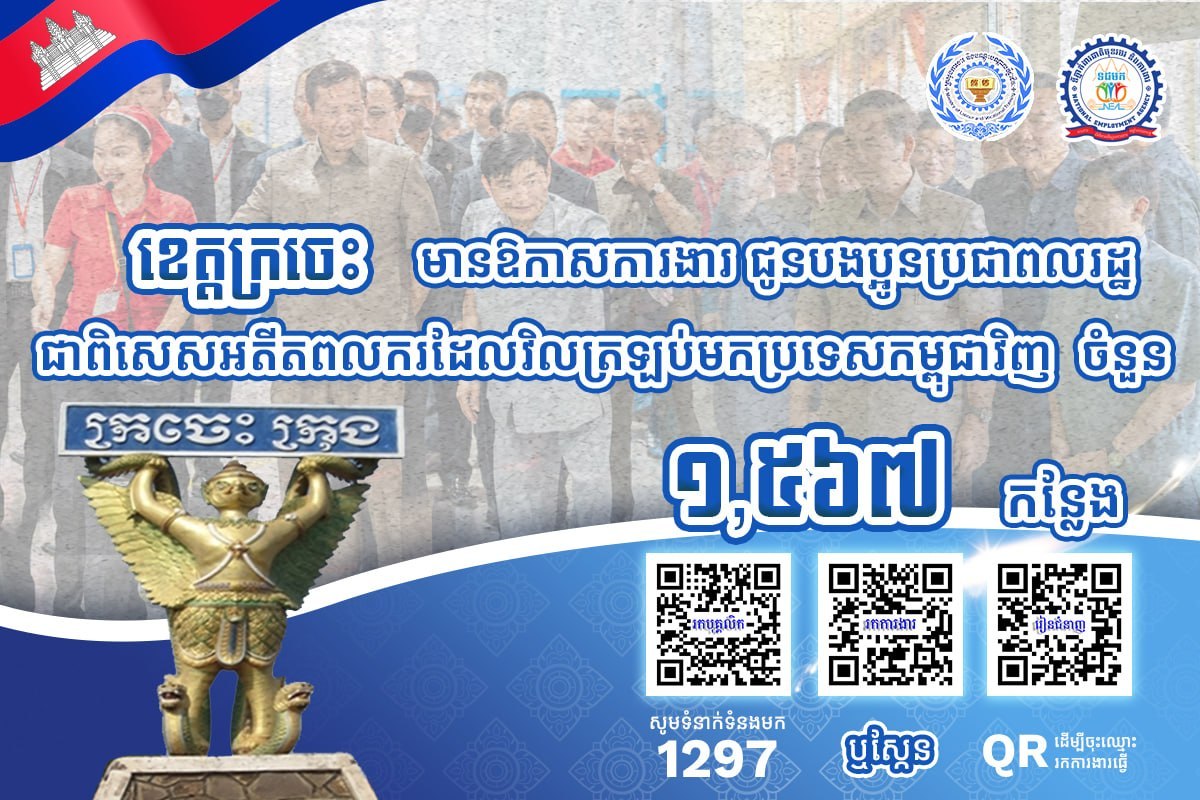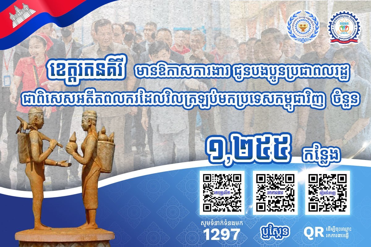 តាមរយៈការផ្សព្វផ្សាយ ក្រសួងការងារ បានឱ្យដឹងថា គិតត្រឹមថ្ងៃទី៣ ខែមេសា ឆ្នាំ២០២៦នេះ ខេត្តស្ថិតនៅភូមិភាគឦសាន្តរួមមាន៖ ខេត្តក្រចេះ ខេត្តស្ទឹងត្រែង ខេត្តរតនគិរី និងខេត្តមណ្ឌលគិរី មានឱកាសការងារសរុបចំនួន ៣,៧៨០កន្លែង កំពុងរង់ចាំបងប្អូនអតីតពលករត្រឡប់មកពីប្រទេសថៃ និងអ្នកកំពុងស្វែងរកការងារធ្វើ។ ឱកាសការងារទាំងនោះ ស្ថិតក្នុងវិស័យកសិកម្ម និងវិស័យសេវាកម្ម។