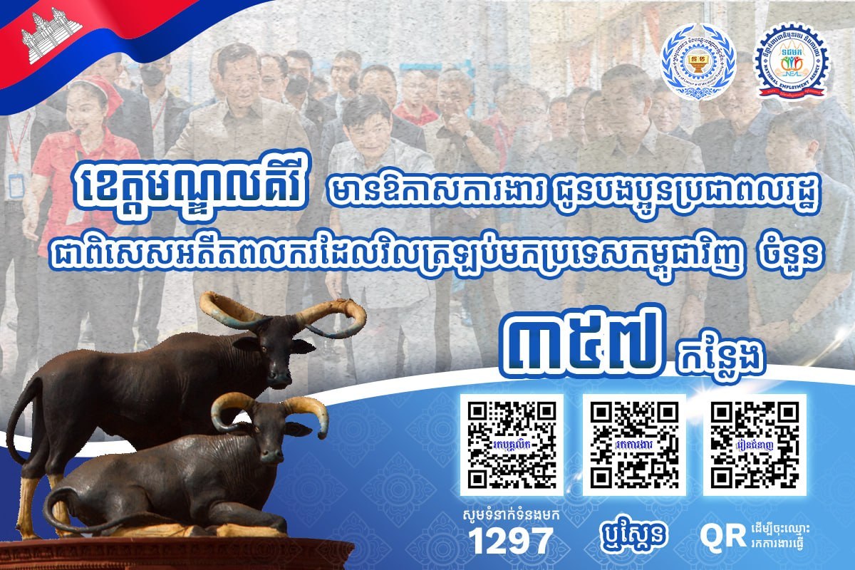 ជាមួយគ្នានេះ ក្រៅពីទំនាក់ទំនងផ្ទាល់ជាមួយរោងចក្រ សហគ្រាស និងរោងចក្រផ្ទាល់ អ្នកស្វែងរកការងារទាំងអស់ ជាពិសេសបងប្អូនអតីតពលករ ក៏អាចទាក់ទងមកប្រព័ន្ធទំនាក់ទំនងបន្ទាន់ ១២៩៧ ដើម្បីឱ្យក្រសួងការងារជួយសម្របសម្រួលស្វែងរកការងារជូនផងដែរ៕