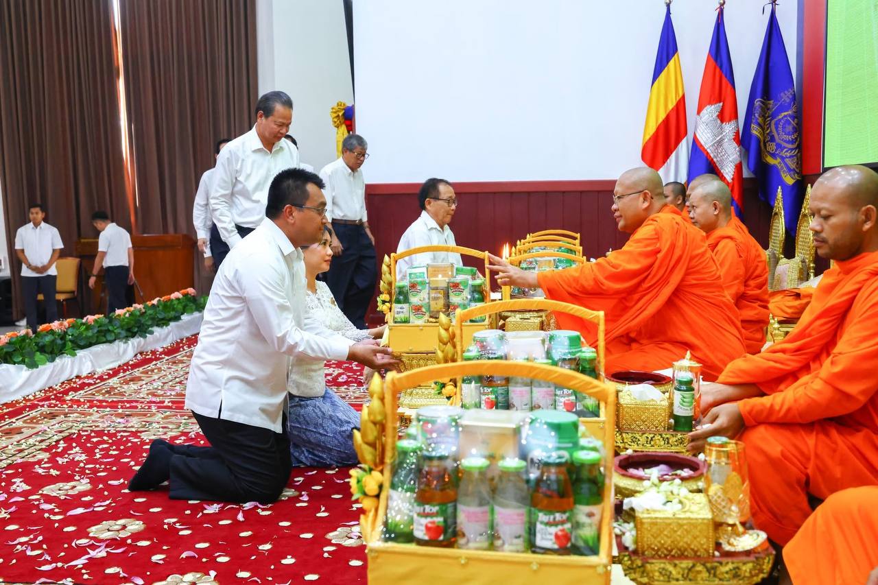 នៅក្នុងពិធីនេះដែរ លោករដ្ឋមន្ត្រី ព្រមទាំងថ្នាក់ដឹកនាំ ក្នុងនាមមន្ត្រីរាជការទាំងអស់ក្រោមឱវាទក្រសួង បានប្រគេននូវទេយ្យវត្ថុ និងបវារណាចតុបច្ច័យ ថ្វាយចំពោះព្រះសង្ឃនាយក និងព្រះភិក្ខុសង្ឃគ្រប់អង្គជាកិច្ចបំពេញកុសល និងបួងសួងសុំសេចក្តីសុខចម្រើន ជោគជ័យលើគ្រប់កិច្ចការងារ សូមកើតមានចំពោះមហាគ្រួសារក្រសួងសាធារណការ និងដឹកជញ្ជូនទាំងមូល ក៏ដូចជាប្រជាពលរដ្ឋខ្មែរគ្រប់ៗរូប ចាប់តាំងពីឆ្នាំថ្មីចូលមកដល់ និងជានិច្ចនិរន្តរ៍តរៀងទៅ៕
