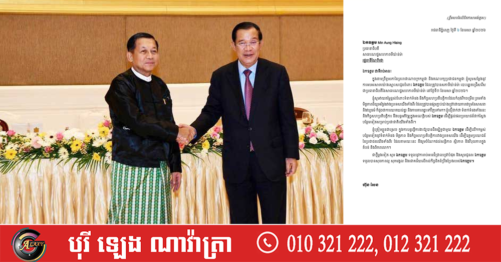 សម្តេចតេជោ ហ៊ុន សែន ផ្ញើសារលិខិតអបអរសាទរជូនលោក Min Aung Hlaing ដែលទើបជាប់បោះឆ្នោតជាប្រធានាធិបតីមីយ៉ាន់ម៉ា