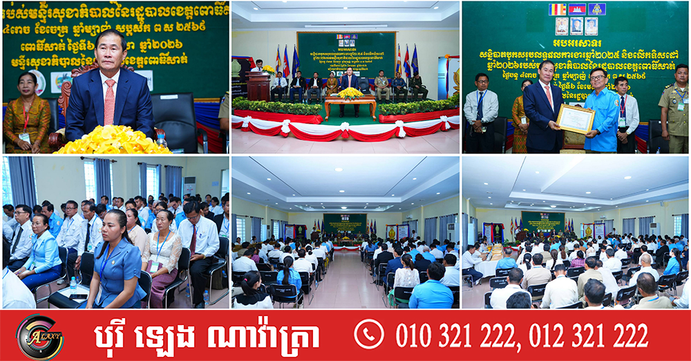 (ពោធិ៍សាត់)៖ លោក ខូយ រីដា អភិបាលនៃគណៈអភិបាលខេត្តពោធិ៍សាត់ នារសៀលថ្ងៃទី០៦ ខែមេសា ឆ្នាំ២០២៦ បានអញ្ជើញជាអធិបតី ក្នុងពិធីបិទសន្និបាតបូកសរុបលទ្ធផលការងារ ឆ្នាំ២០២៥ និងលើកទិសដៅអនុវត្ត ឆ្នាំ២០២៦ របស់មន្ទីរសុខាភិបាល នៃរដ្ឋបាលខេត្ត។ ក្នុងឱកាសនោះ ឯកឧត្តមក៏បានផ្ដល់កិត្តិយសប្រគល់បណ្ណសរសើរជូនដល់មន្ត្រី និងអង្គភាពដែលមានស្នាដៃល្អសរុបចំនួន ៩៩ ដើម្បីជាការលើកទឹកចិត្ត ក្រោយសម្រេចបានស្នាដៃធំៗក្នុងឆ្នាំ២០២៥។