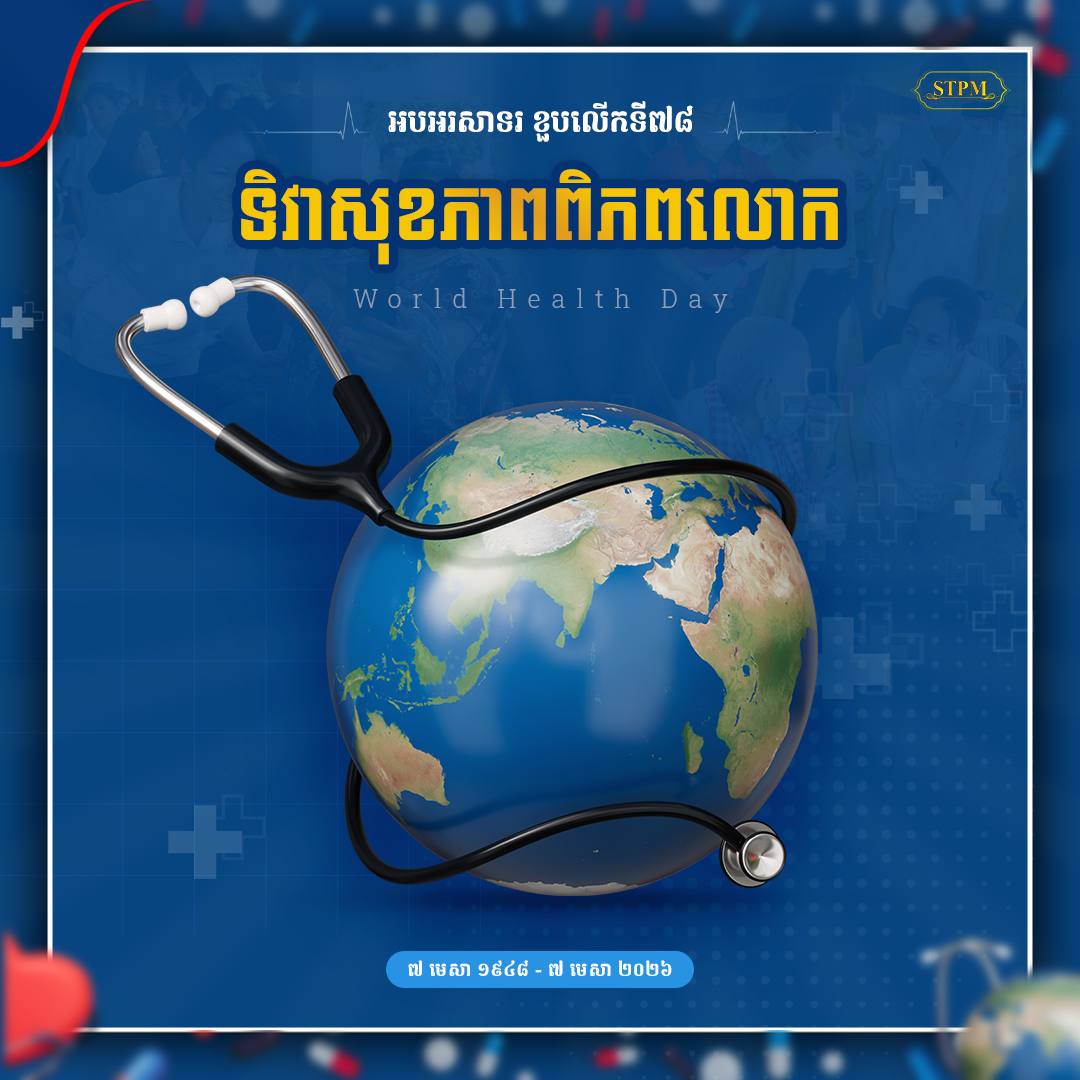 (ភ្នំពេញ)៖ សម្តេចបវរធិបតី ហ៊ុន ម៉ាណែត នាយករដ្ឋមន្ត្រីនៃកម្ពុជា នៅព្រឹកថ្ងៃទី៧ ខែមេសា ឆ្នាំ២០២៦នេះ បានបង្ហោះសារអបអរសាទរ ខួបលើកទី៧៨ ទិវាសុខភាពពិភពលោក (World Health Day) ២០២៦ (៧ មេសា ១៩៤៨ - ៧ មេសា ២០២៦)។