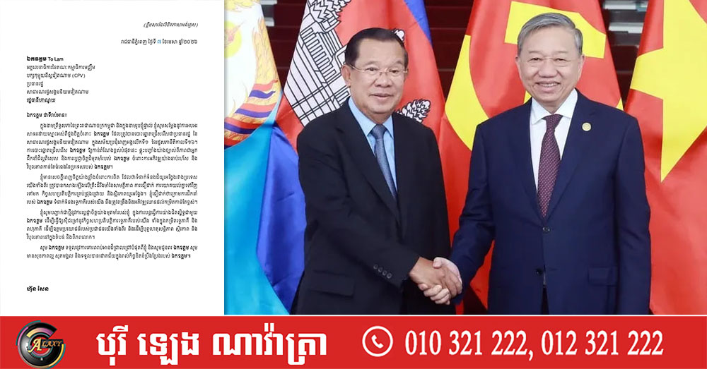 (ភ្នំពេញ)៖ សម្តេចតេជោ ហ៊ុន សែន ប្រមុខរដ្ឋស្តីទីនៃកម្ពុជា នៅថ្ងៃទី៧ ខែមេសា ឆ្នាំ២០២៦នេះ បានផ្ញើសារអបអរសាទរជូន លោក To Lam អគ្គលេខាធិការនៃគណៈកម្មាធិការមជ្ឈឹមបក្សកុម្មុយនីស្តវៀតណាម ដែលទើបត្រូវបានបោះឆ្នោតជ្រើសរើសជាប្រធានរដ្ឋ នៃសាធារណរដ្ឋសង្គមនិយមវៀតណាម។