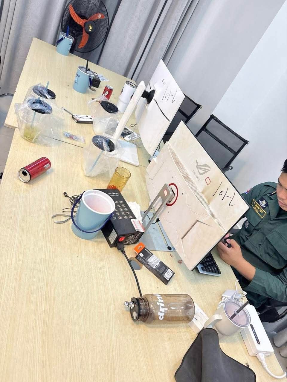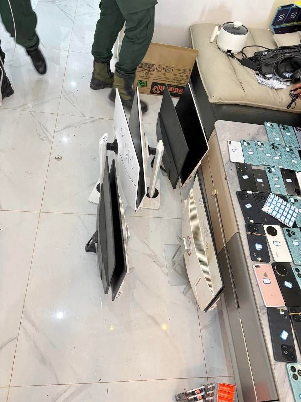 ដកហូតវត្ថុតាងរួមមាន៖ កុំព្យូទ័រលើតុ ១០គ្រឿង, Laptop១គ្រឿង, ទូរស័ព្ទដៃ៦១គ្រឿង, ដាវ ២ដើម, រថយន្ត ០១គ្រឿង និងសម្ភារៈប្រើប្រាស់មួយចំនួនទៀត។