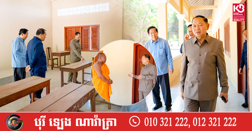 (កំពង់ឆ្នាំង)៖ លោក ឆាយ ឫទ្ធិសែន រដ្ឋមន្ត្រីក្រសួងអភិវឌ្ឍន៍ជនបទ អនុប្រធានទី១ ក្រុមការងាររាជរដ្ឋាភិបាលចុះមូលដ្ឋានខេត្តកំពង់ឆ្នាំង និងជាប្រធានក្រុមការងាររាជរដ្ឋាភិបាលចុះមូលដ្ឋានស្រុកសាមគ្គីមានជ័យ និងស្រុកទឹកផុស ព្រមទាំងថ្នាក់ដឹកនាំក្រសួងអភិវឌ្ឍន៍ជនបទ និងអាជ្ញាធរមូលដ្ឋាន នាថ្ងៃទី៧ ខែមេសា ឆ្នាំ២០២ បានអញ្ជើញពិនិត្យវឌ្ឍនភាពការងារសាងសង់សាលាពុទ្ធិកបឋមសិក្សា១ខ្នង ដែលមានបណ្ដោយ ៤០ម៉ែត្រ និងទទឹង ៩ម៉ែត្រ មានចំនួន ៥បន្ទប់ ស្ថិតនៅក្នុងវត្តក្បាលកោះ ភូមិបឹងលាជ ឃុំសេដ្ឋី ស្រុកសាមគ្គីមានជ័យ ខេត្តកំពង់ឆ្នាំង ដែលជាការផ្ដួចផ្ដើមសាងសង់ដោយគណៈកម្មាការវត្តនិងពុទ្ធបរិស័ទ តាំងពីឆ្នាំ២០២៣ មក។