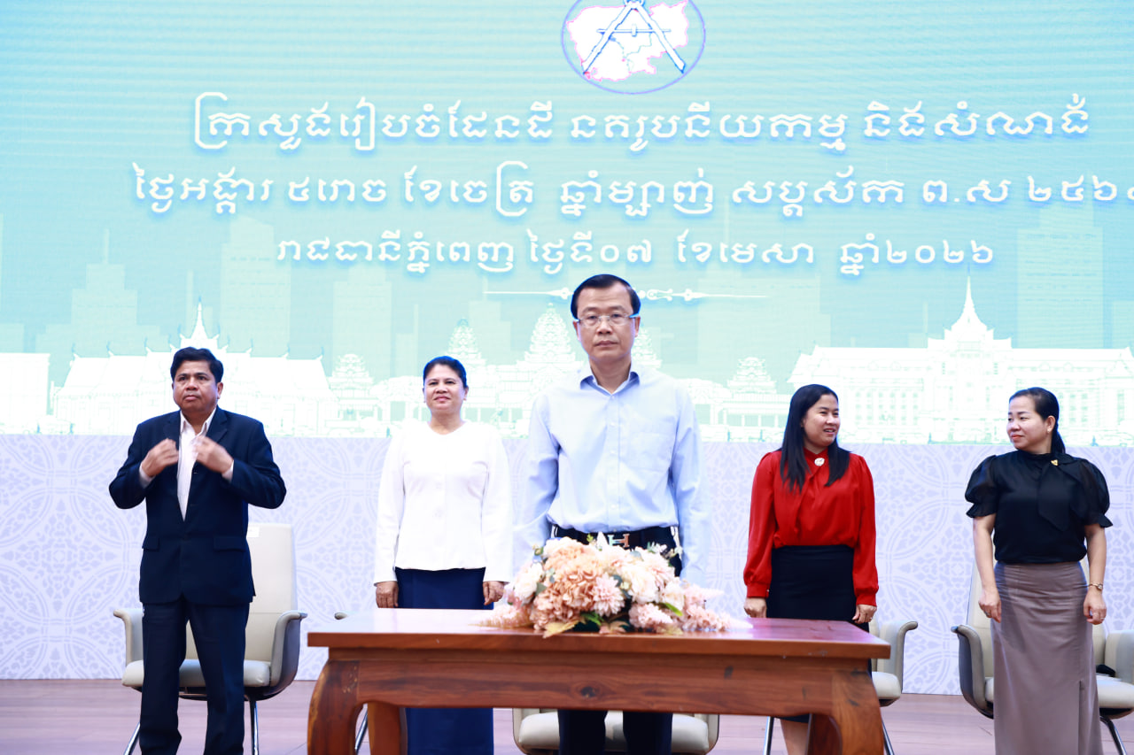 (ភ្នំពេញ)៖ ក្រសួងរៀបចំដែនដី នគរូបនីយកម្ម និងសំណង់ នៅព្រឹកថ្ងៃទី៧ ខែមេសា ឆ្នាំ២០២៦ បានរៀបចំពិធីចែកបណ្ណកម្មសិទ្ធិជូនអតិថិជនបុរី ខេភី ម៉ន ដានី គម្រោងទី២៩ ចំនួន ៩៨៨បណ្ណ និងបុរី PR វីឡា ចំនួន ១៩ បណ្ណ ក្រោមអធិបតីភាព លោក ថេង ច័ន្ទសង្វារ រដ្ឋលេខាធិការ តំណាង ឧបនាយករដ្ឋមន្ត្រី សាយ សំអាល់ រដ្ឋមន្ត្រីក្រសួងរៀបចំដែនដី នគរូបនីយកម្ម និងសំណង់។