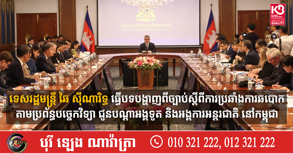 ទេសរដ្ឋមន្ត្រី ឆៃ ស៊ីណារិទ្ធ ធ្វើបទបង្ហាញពីច្បាប់ស្ដីពីការប្រឆាំងការឆបោកតាមប្រព័ន្ធបច្ចេកវិទ្យា ជូនបណ្ដាអង្គទូត និងអង្គការអន្តរជាតិ នៅកម្ពុជា