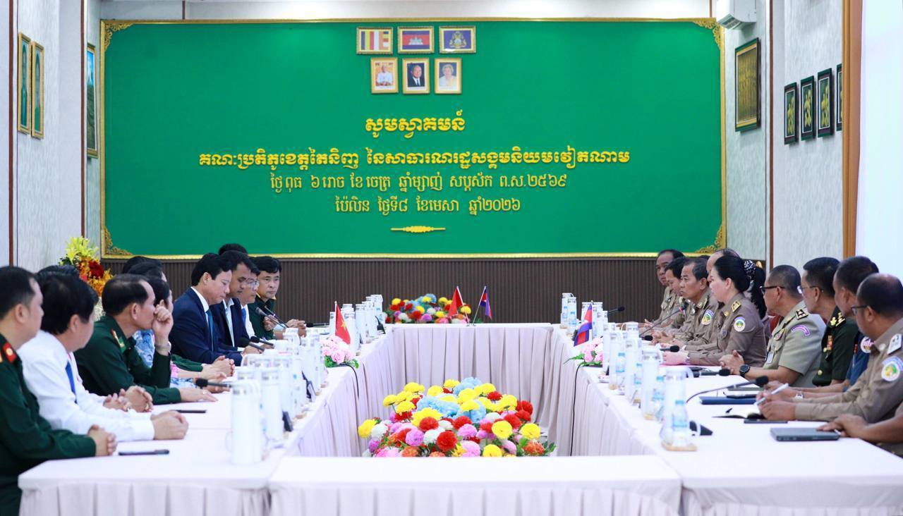 (ប៉ៃលិន)៖ នាព្រឹកថ្ងៃទី៨ ខែមេសា ឆ្នាំ២០២៦ លោកស្រីបណ្ឌិត បាន ស្រីមុំ អភិបាលខេត្តប៉ៃលិន បានអញ្ជើញទទួលជួបសម្ដែងការគួរសមជាមួយគណៈប្រតិភូ ដែលដឹកនាំដោយលោក ផាម តឹនហ្វា អនុប្រធាន គណៈកម្មាធិការប្រជាជនខេត្តតៃនិញ និងជាប្រធានគណៈកម្មការណែនាំ ៥២៥ខេត្តនៃសាធារណរដ្ឋសង្គម និយមវៀត ណាម ក្នុងឱកាសបំពេញទស្សនកិច្ចការងារ និងជូនពរឆ្នាំថ្មីប្រពៃណីជាតិខ្មែរ ឆ្នាំមមី អដ្ឋស័ក ពស.២៥៧០ គស.២០២៦ ជូនដល់ថ្នាក់ដឹកនាំ និងប្រជាជនខេត្តប៉ៃលិន។