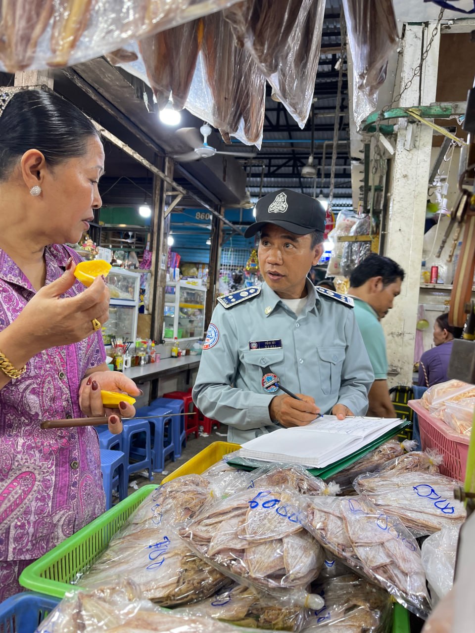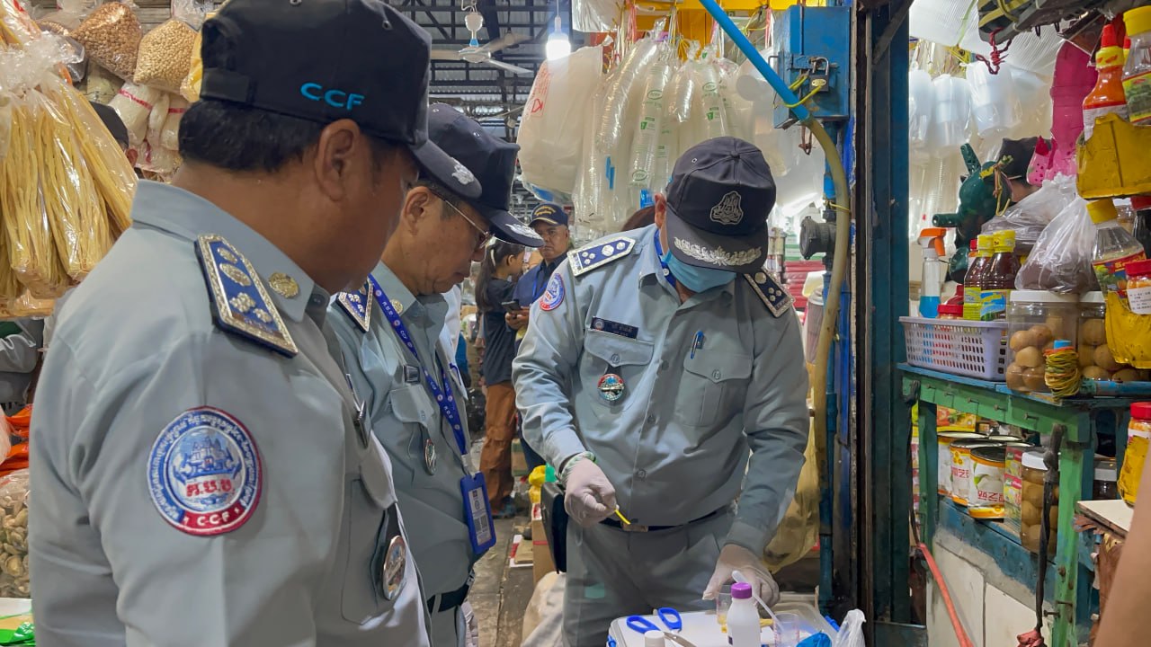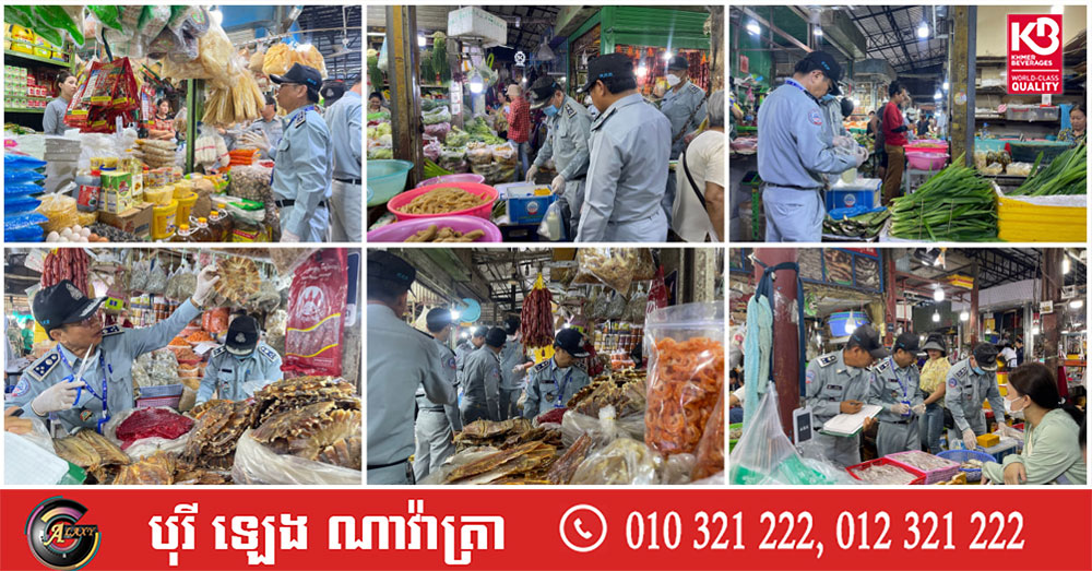 មន្ដ្រីជំនាញ ក.ប.ប បន្តចុះត្រួតពិនិត្យគុណភាពម្ហូបអាហារ គ្រឿងឧបភោគបរិភោប នៅផ្សារលើ ក្រុងព្រះសីហនុ ដើម្បីធានាសុវត្ថិភាពសុខុមាលភាពជូនអ្នកប្រើប្រាស់