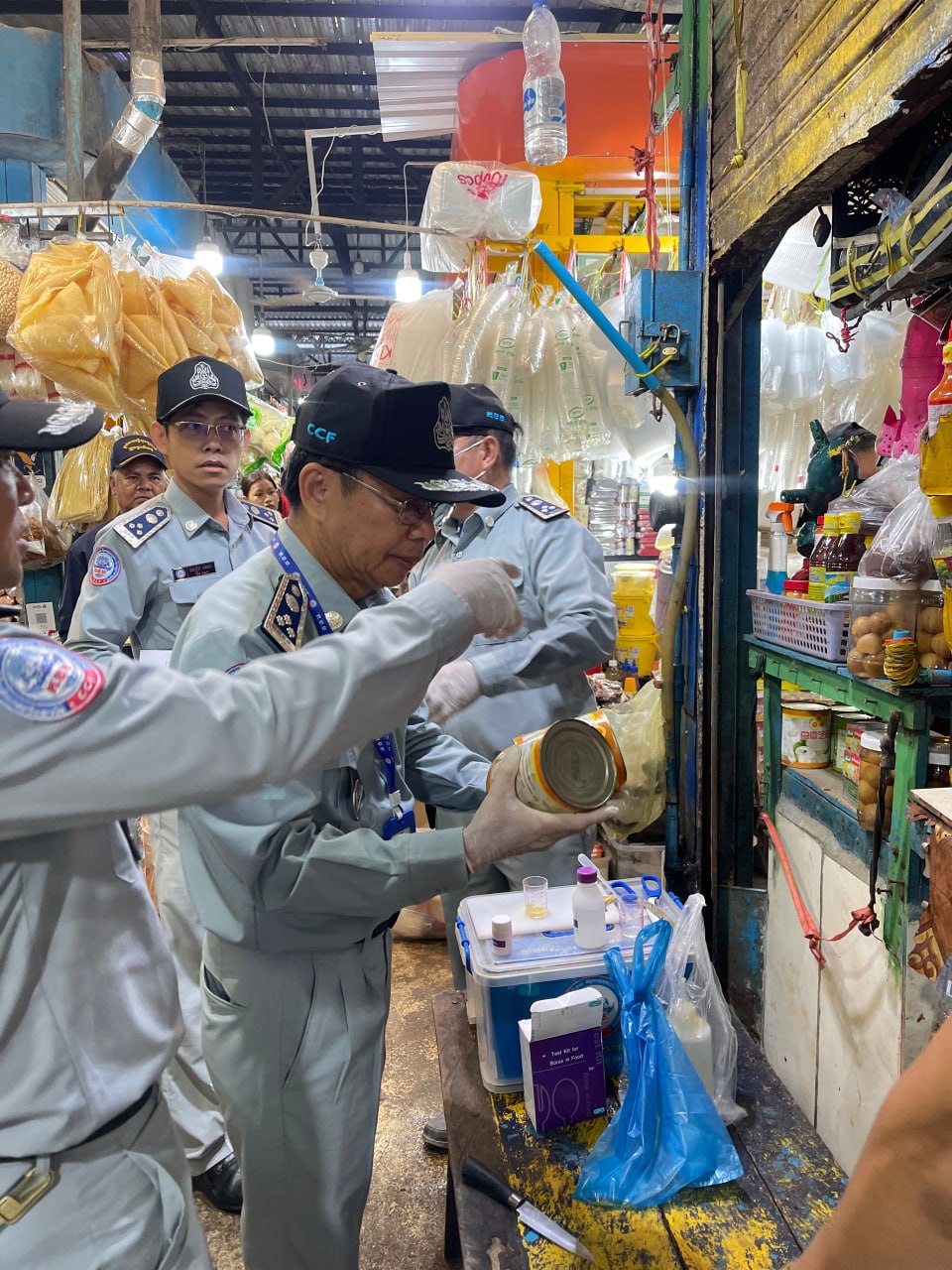 លោក ឃុន ស៊ីម៉ន បានឲ្យដឹងថា មន្ត្រីនៃការិយាល័យពិសោធន៍ខ្នាតតូចនៃសាខា ក.ប.ប. ខេត្តព្រះសីហនុ ធ្វើតេស្តបឋមរកសារធាតុ បូរ៉ាក់ និងហ្វ័រម៉ាលីន លើម្ហូបអាហារជាច្រើនមុខ នៅទីតាំងផ្ទាល់ និងបន្តមកវិភាគនៅសាខាបន្ថែម។