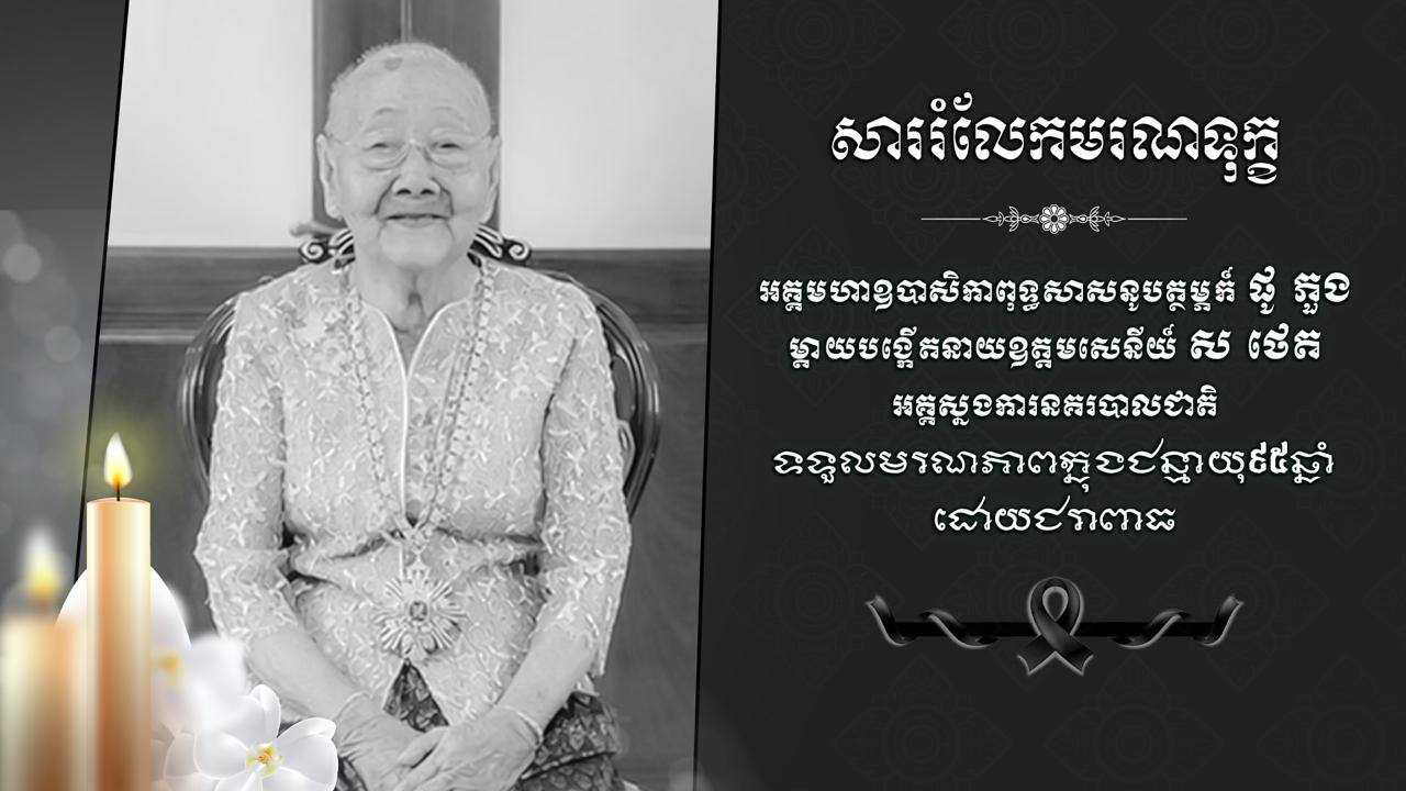 (ភ្នំពេញ)៖ នាយឧត្តមសេនីយ៍ សួស អង្គារ៍ រដ្ឋលេខាធិការក្រសួងមហាផ្ទៃ និងលោកជំទាវឧកញ៉ា ញឹម សុខាល័យ ផ្ញើសាររំលែកទុក្ខជូនឯកឧត្ដម នាយឧត្តមសេនីយ៍ ស ថេត អគ្គស្នងការនគរបាលជាតិ ចំពោះមរណភាព