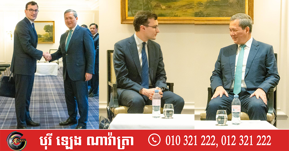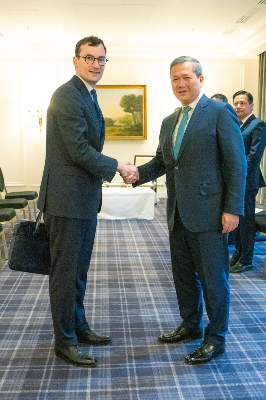 (បារាំង)៖ នៅព្រឹកថ្ងៃទី៨ ខែមេសា ឆ្នាំ២០២៦នេះ សម្តេចមហាបវរធិបតី ហ៊ុន ម៉ាណែត នាយករដ្ឋមន្ត្រីកម្ពុជា បានអនុញ្ញាតឱ្យលោក Rémi Maumont de Longevialle នាយកប្រតិបត្តិក្រុមហ៊ុន VINCI Airports ជួបសម្តែងការគួរសម និងពិភាក្សាការងារ។