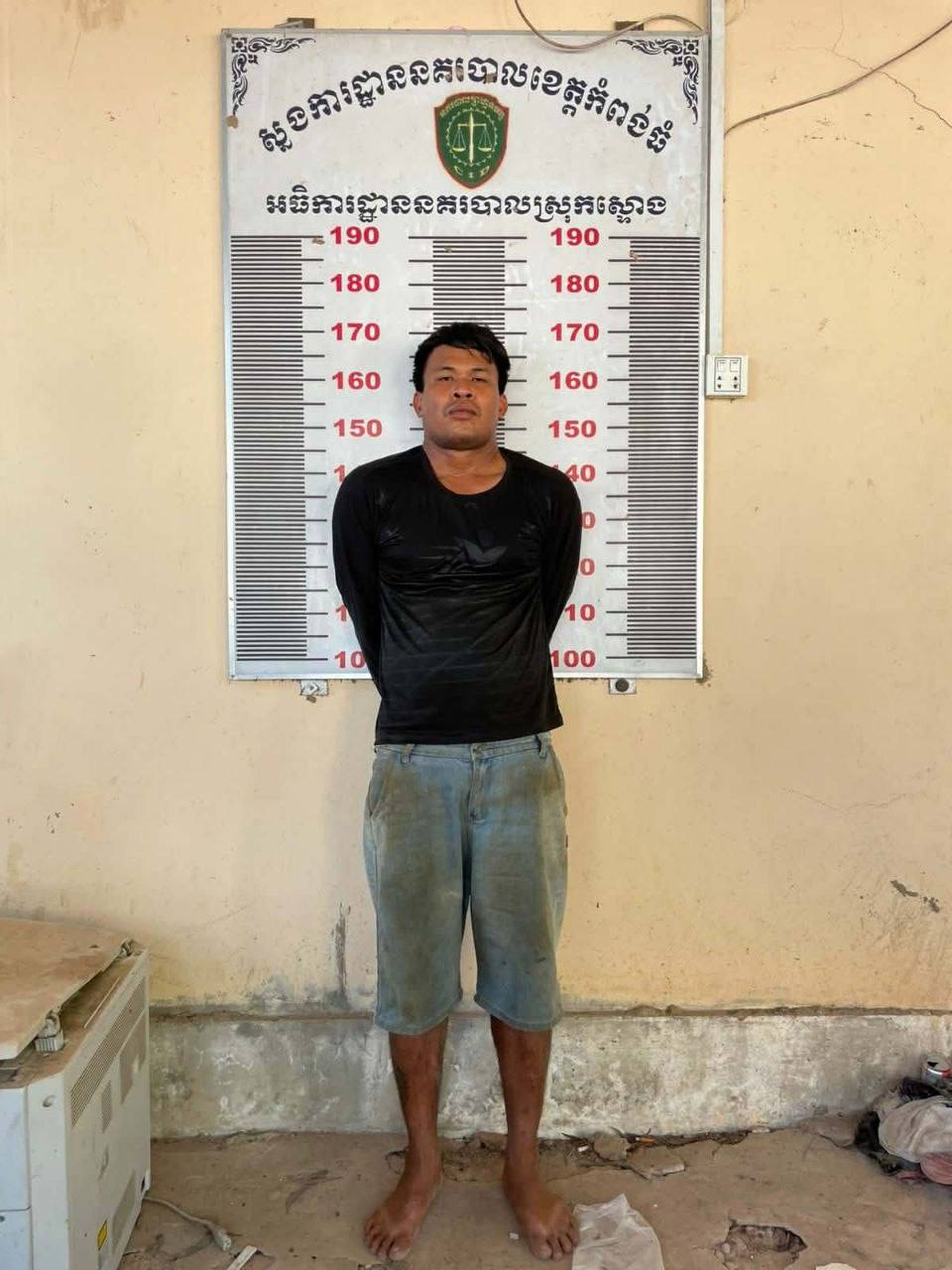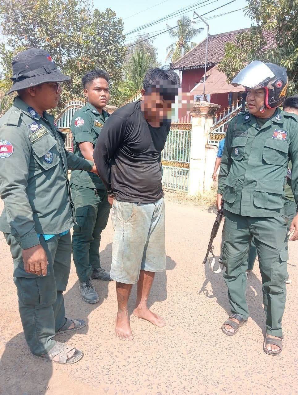 ក្រោយទទួលបានព័ត៌មានភ្លាម អធិការនគរបាលស្រុកស្ទោង បានដឹកនាំកម្លាំងជំនាញ និងកម្លាំងប៉ុស្តិ៍នគរបាលរដ្ឋបាលឃុំកំពង់ចិនជើង ចុះឡោមព័ទ្ធផ្ទះជនសង្ស័យនៅភូមិរកា ឃុំកំពង់ចិនជើង ស្រុកស្ទោង ខេត្តកំពង់ធំ ហើយបានឃាត់ខ្លួនជនសង្ស័យបានដោយជោគជ័យ រួចបញ្ជូនមកកាន់អធិការដ្ឋាននគរបាលស្រុកស្ទោង ដើម្បីសាកសួរ និងចាត់ការតាមនីតិវិធីច្បាប់។