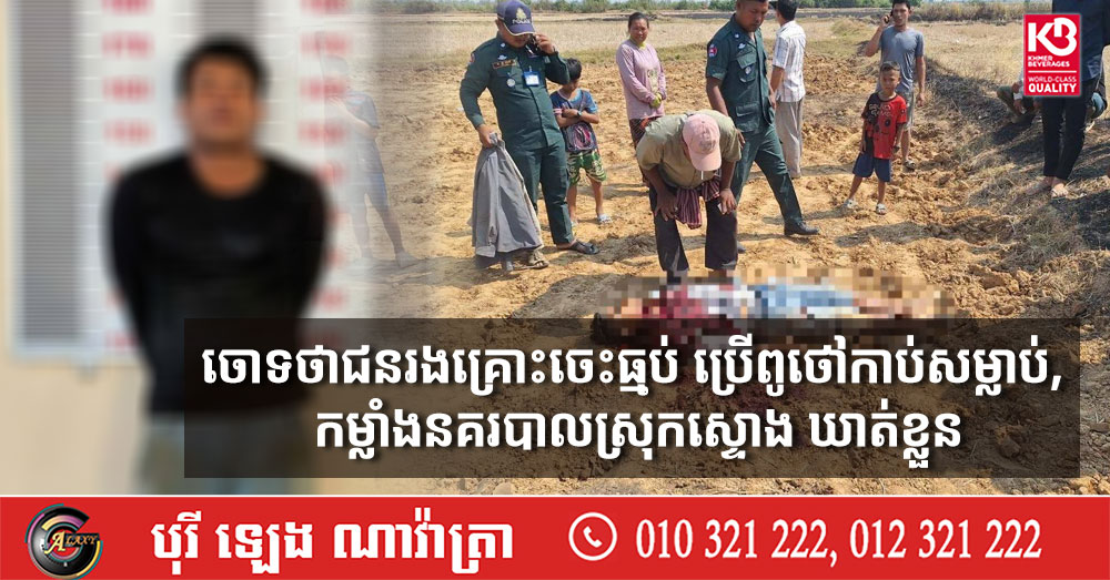 (កំពង់ធំ)៖ កម្លាំងនគរបាលស្រុកស្ទោង ខេត្តកំពង់ធំ បានឃាត់ខ្លួនជនសង្ស័យម្នាក់ ពាក់ព័ន្ធករណីឃាតកម្ម ដែលបានកើតឡើងនៅព្រឹកថ្ងៃទី៨ ខែមេសា ឆ្នាំ២០២៦ ស្ថិតក្នុងភូមិសំប៉ាន ឃុំម្សាក្រង ស្រុកស្ទោង ខេត្តកំពង់ធំ។