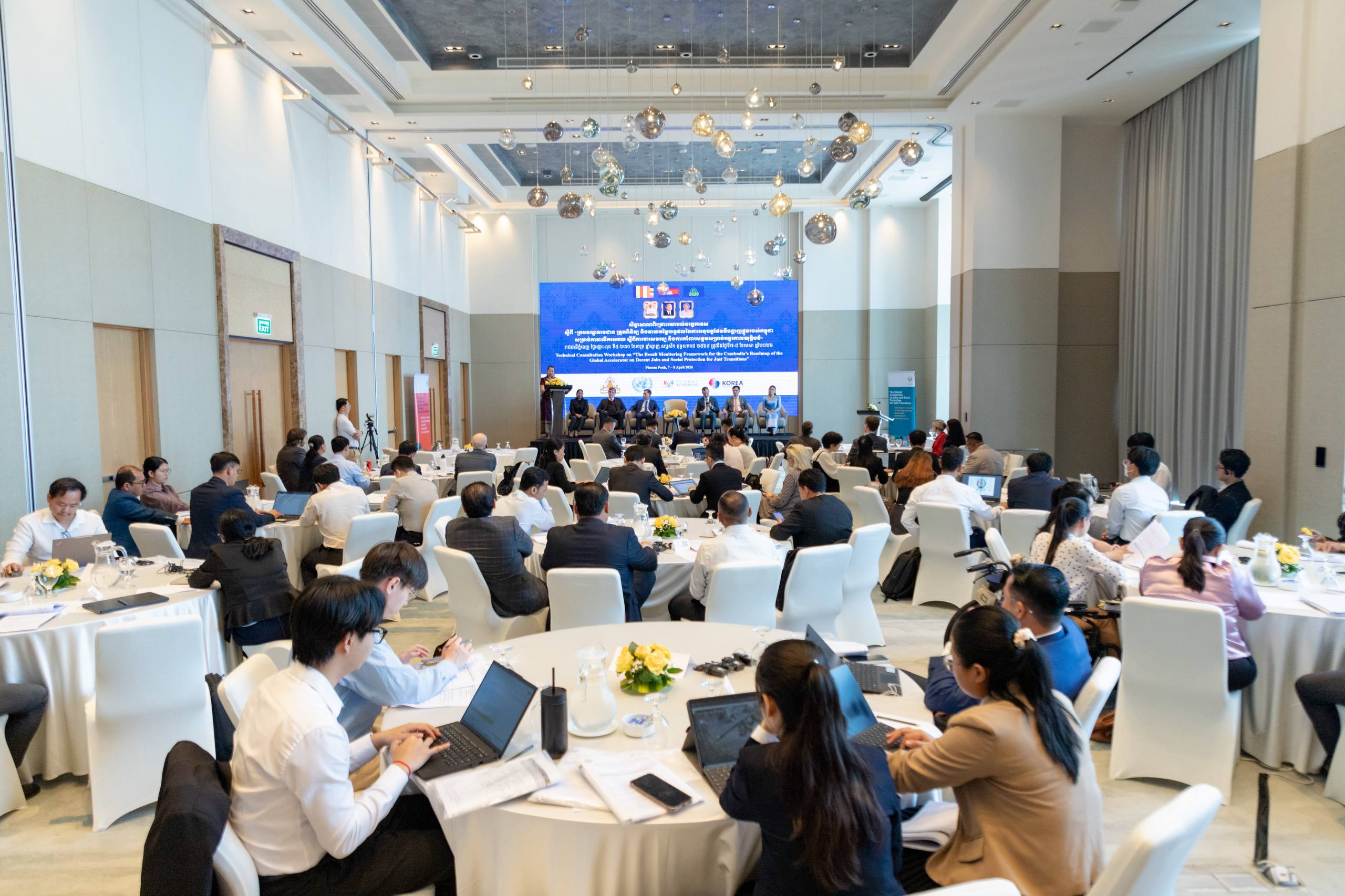 លោកស្រីរដ្ឋលេខាធិការប្រចាំការ បានថ្លែងបើកអង្គសិក្ខាសាលា ដោយបានគូសបញ្ជាក់ថា កម្ពុជាបានចូលរួមជា «ប្រទេសត្រួសត្រាយផ្លូវ» នៅចុងឆ្នាំ២០២៣ និងអនុវត្តផែនទីបង្ហាញផ្លូវ ២០២៥-២០២៨ ដោយផ្តោតលើសេដ្ឋកិច្ចក្រៅប្រព័ន្ធ ជំនាញ និងការគាំពារសង្គម មានគោលដៅយុទ្ធសាស្ត្រ ៥ សំខាន់ៗរួមមាន ការអនុម័តគោលនយោបាយម៉ាក្រូសេដ្ឋកិច្ចគាំទ្រការបង្កើតការងារ ការអភិវឌ្ឍជំនាញ ការពង្រីកការគាំពារសង្គមឆ្ពោះទៅការគ្របដណ្តប់សុខភាពជាសកល ការជំរុញសេដ្ឋកិច្ចក្នុងប្រព័ន្ធ និងការបង្កើតបរិយាកាសទីផ្សារការងារប្រកបដោយបរិយាបន្ន។