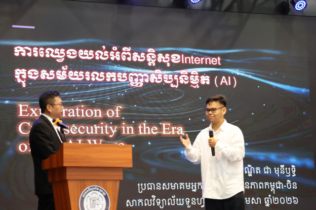 លោកបណ្ឌិត ជា មុនីឫទ្ធិ, សមាជិកគណៈប្រតិបត្តិសមាគមមិត្តភាពកម្ពុជា-ចិន បានលើកឡើងពីសារៈសំខាន់នៃសន្តិសុខ Cyber និងការប្រើប្រាស់ AI ប្រកបដោយសុវត្ថិភាព។ បន្ថែមពីនេះ លោកបានចែករំលែកពីការសម្របសម្រួល សហការជាមួយ បណ្តាគ្រឹះស្ថានអប់រំ និងសង្គមស៊ីវិលចិន ដើម្បីនាំយកបណ្ណបណ្ណាល័យអេឡិចត្រូនិកថ្មីៗសម្រាប់ការសិក្សា និងស្រាវជ្រាវរបស់និស្សិតកម្ពុជា ដែលធ្វើឲ្យការសិក្សា និងការស្រាវជ្រាវរបស់សិស្សនិស្សិតកាន់តែលឿន និងមានប្រសិទ្ធភាពខ្ពស់។