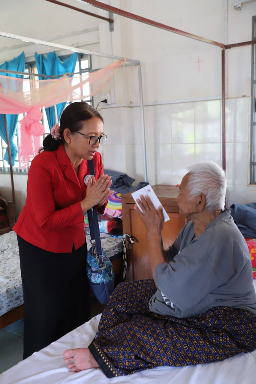 (ភ្នំពេញ)៖ សម្ដេចកិត្ដិព្រឹទ្ធបណ្ឌិត ប៊ុន រ៉ានី ហ៊ុនសែន ប្រធានកាកបាទក្រហមកម្ពុជា បានចាត់សហការីនៃកាកបាទក្រហមកម្ពុជា ដឹកនាំដោយលោកស្រី ហួន ចន្ទបូរ៉ា នាយិកានាយកដ្ឋានទំនាក់ទំនង ចុះមកសួរសុខទុក្ខដោយផ្ទាល់ និងនាំយកនូវអំណោយមនុស្សធម៌ជាលើកទី២៦ រួមមានស្បៀងអាហារ និងថវិកាចំនួន ១០លានរៀល ព្រមទាំងរៀបចំនំបញ្ចុកដ៏មានឱជារសឈ្ងុយឆ្ងាញ់មួយពេល ជូនដល់បុគ្គលិក កុមារកំព្រា គ្រួសារអ្នកផ្ទុកមេរោគអេដស៍ និងចាស់ឥតទីពឹង ចំនួន ៣៤៣នាក់ ដែលរស់នៅក្រោមដំបូលនៃអង្គការសង្គ្រោះជនអស់សង្ឃឹម ស្ថិតនៅភូមិលិចវត្ត សង្កាត់កំបូល ខណ្ឌកំបូល រាជធានីភ្នំពេញ។