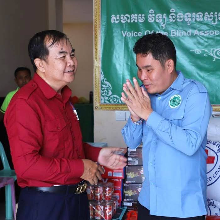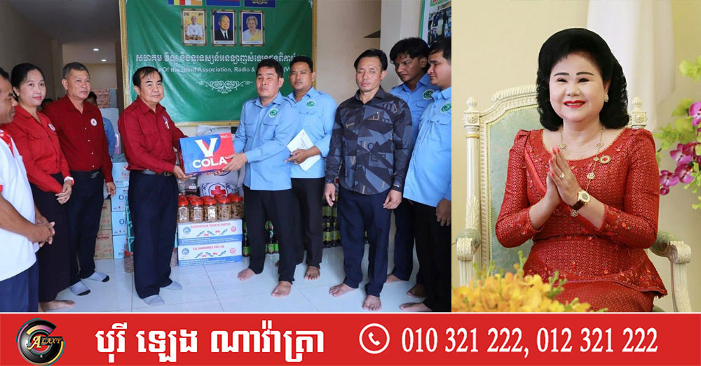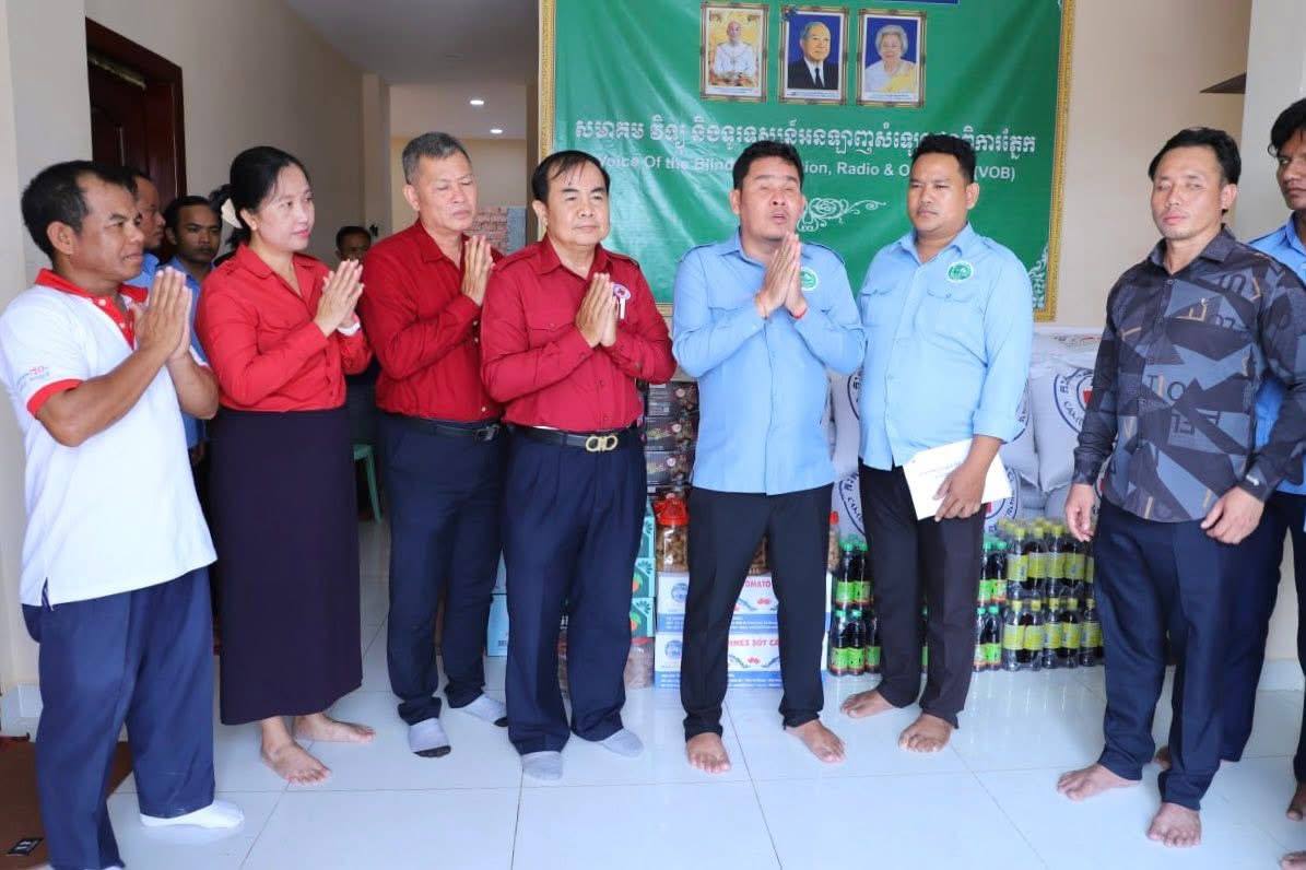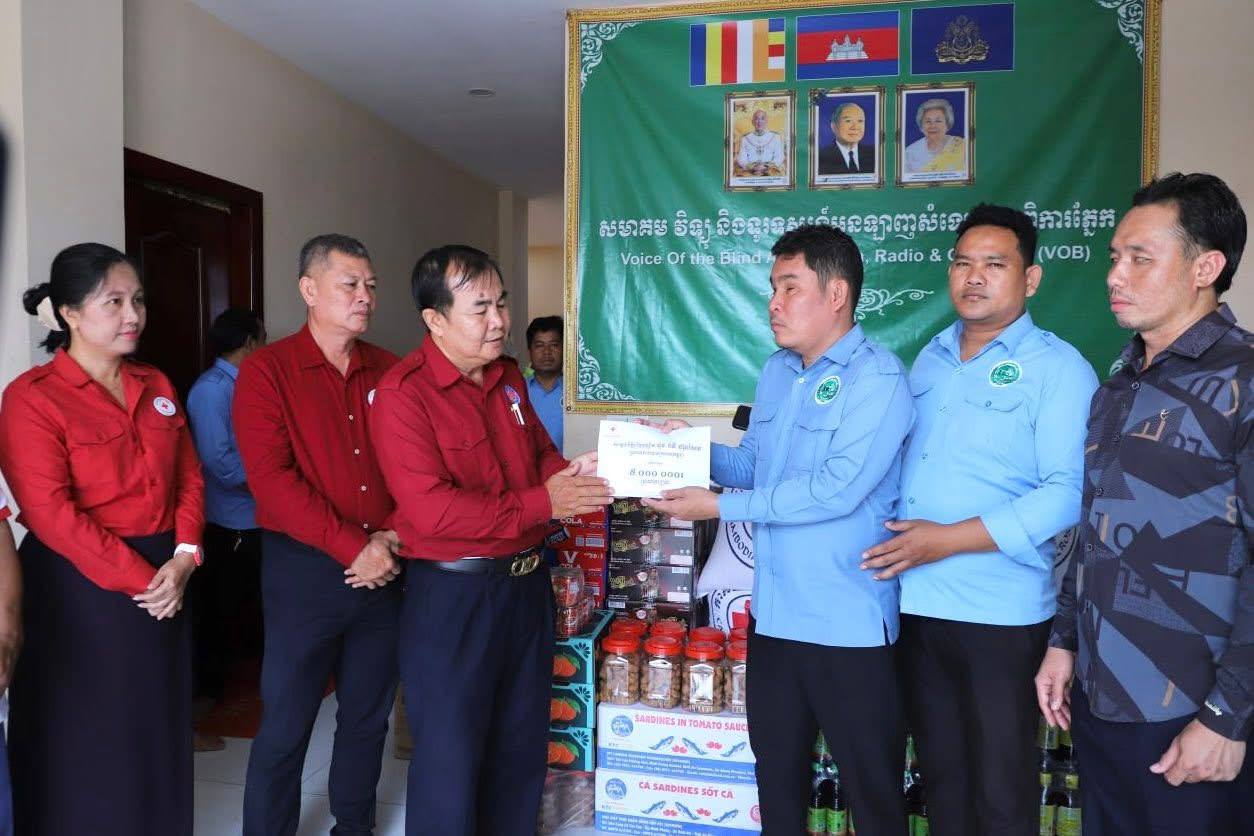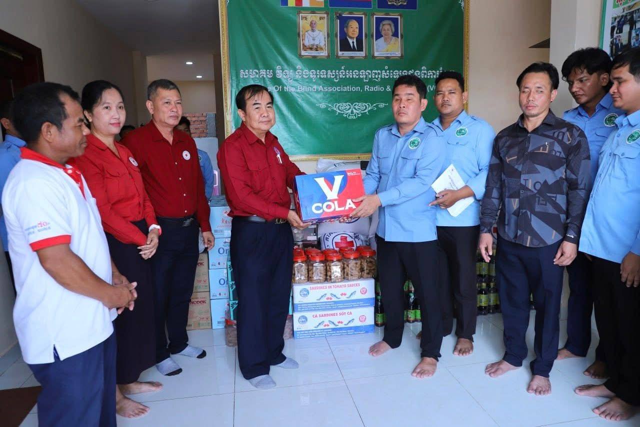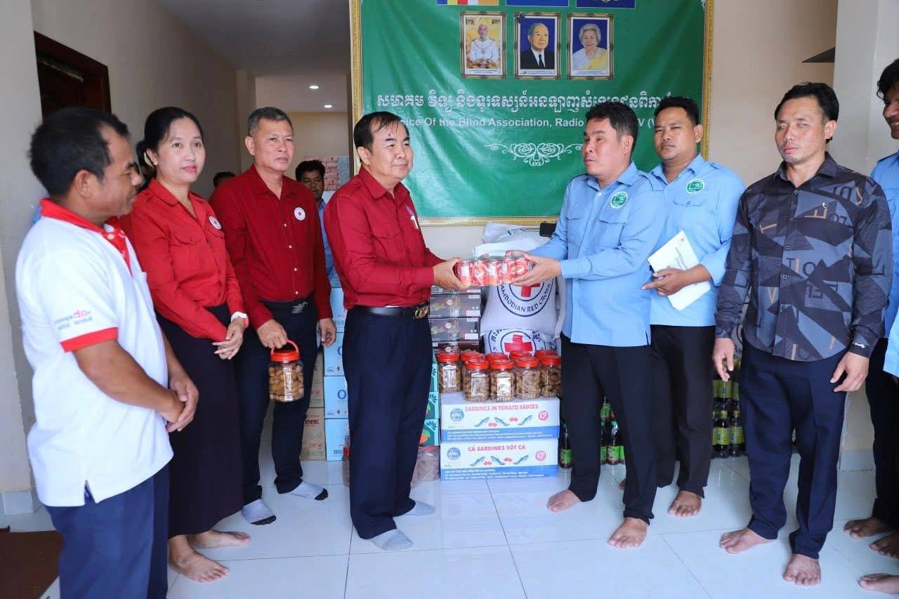 សូមបញ្ជាក់ដែរថា សមាគមវិទ្យុ និងទូរទស្សន៍អនឡាញសំឡេងជនពិការភ្នែក មាននៅរាជធានីភ្នំពេញ ខេត្តបាត់ដំបង ខេត្តបន្ទាយមានជ័យ និងខេត្តកំពង់ចាម ដែលត្រូវបានទទួលការឧបត្ថម្ភកសាងទាំងស្រុងពី សម្តេចអគ្គមហាសេនាបតីតេជោ ហ៊ុន សែន និងសម្តេចកិត្តិព្រឹទ្ធបណ្ឌិត ប៊ុន រ៉ានី ហ៊ុនសែន ព្រមទាំងបុត្រាបុត្រី។ ដោយមើលឃើញពីសេចក្តីត្រូវការចាំបាច់ក្នុងជីវភាពរស់នៅប្រចាំថ្ងៃ និងក្នុងឱកាសបុណ្យចូលឆ្នាំថ្មីប្រពៃណីជាតិខ្មែរខាងមុខផងនោះ ទើបសម្តេចកិត្តិព្រឹទ្ធបណ្ឌិត ប៊ុន រ៉ានី ហ៊ុនសែន ប្រធានកាកបាទក្រហមកម្ពុជា បានសម្រេចឧបត្ថម្ភជូនសមាគមនាពេលនេះ រួមមាន៖ អង្ករ ២តោន, មី ២០កេស, ត្រីខ ២កេស, ទឹកត្រី ៦០ដប,ទឹកស៊ីអ៊ីវ ៦០ដប, ឆៃពៅ ២០កំប៉ុង, ប្រេងឆា ២កេស, ទឹកបរិសុទ្ធឱរ៉ាល់ ១០កេស, ភេសជ្ជៈវីកូឡា ១០កេស,ក្រូចខ្វិច ៣កេស និងថវិកា ៥លានរៀល៕