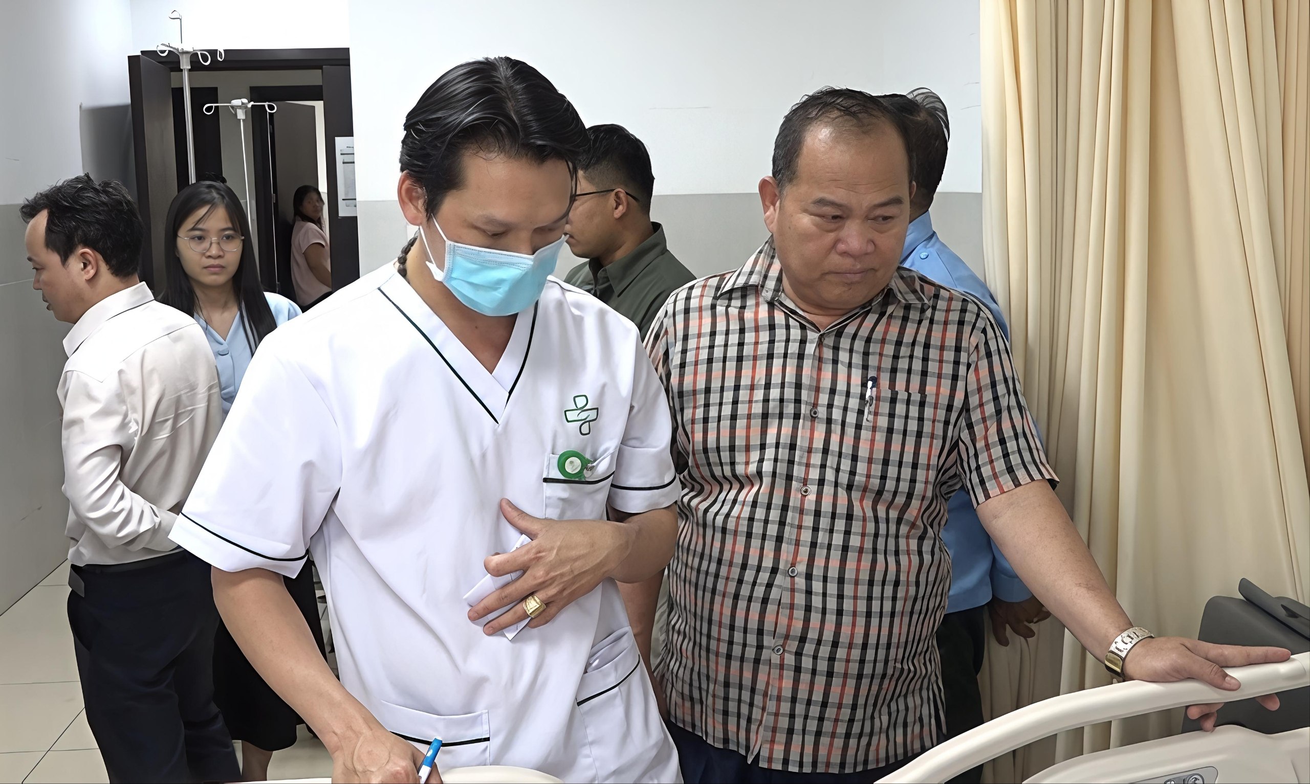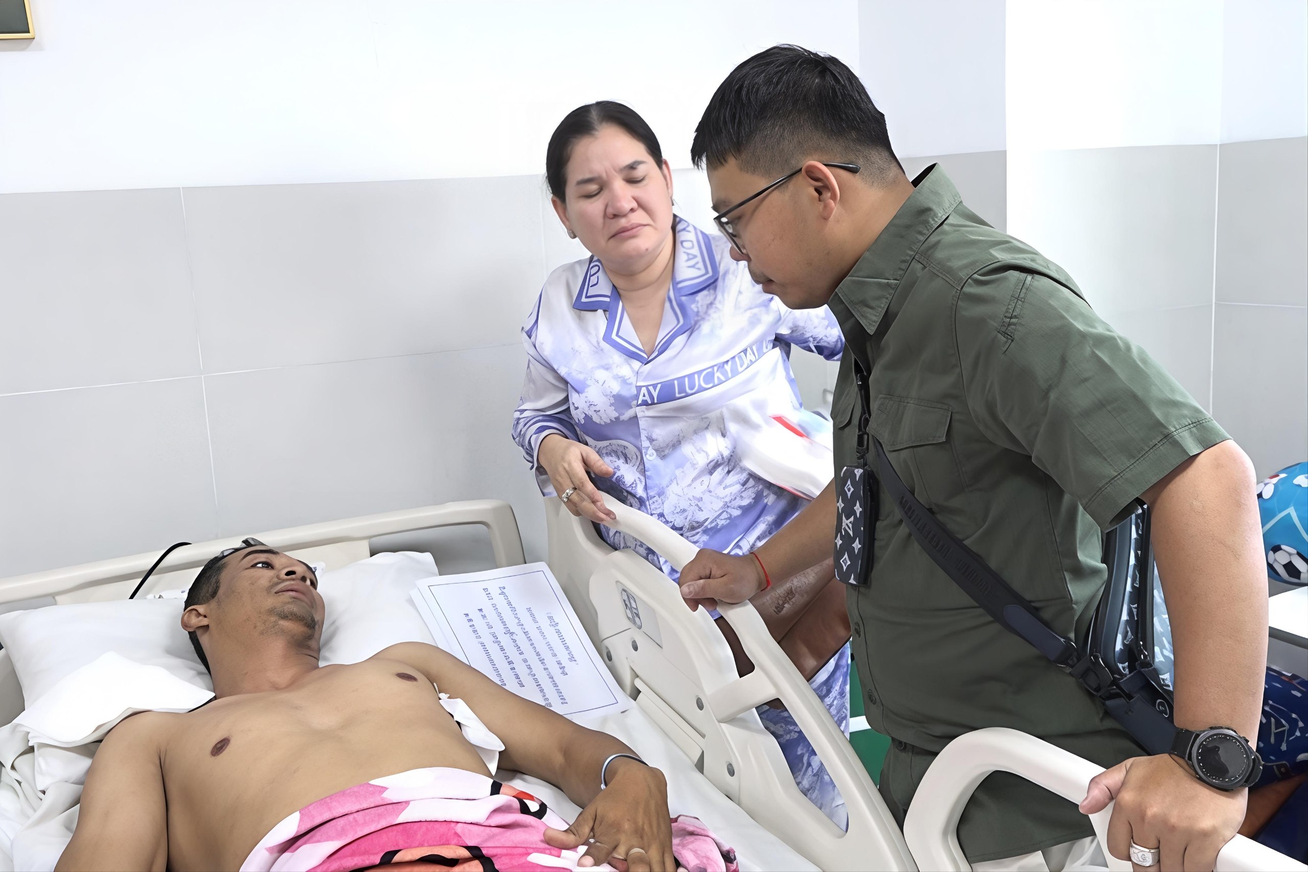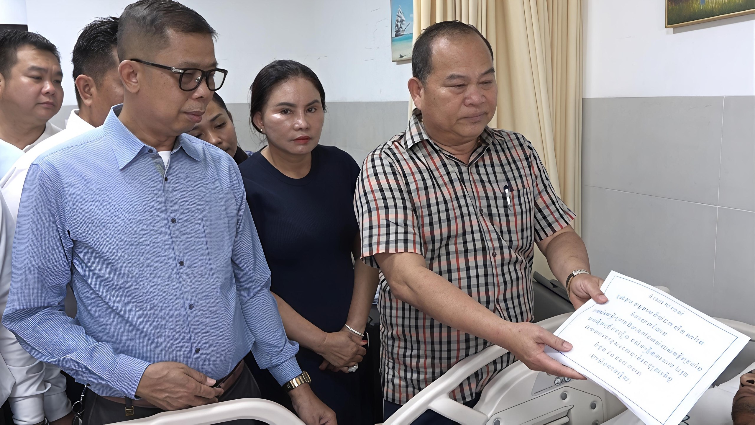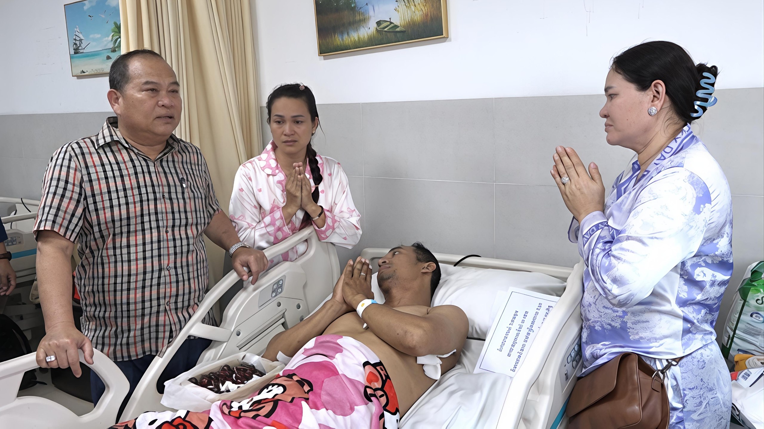 នាយឧត្តមសេនីយ៍ ស ថេត ចាត់តាំងឧត្តមសេនីយ៍ឯក ឃឹង សារ៉ាត់ ដឹកនាំគណៈប្រតិភូចុះសួរសុខទុក្ខ និងនាំយកថវិកាឧបត្ថម្ភ ដល់វីរៈនគរបាលប្រឆាំងគ្រឿងញៀនពីររូប ដែលកំពុងសម្រាកព្យាបាល នៅប្រទេសវៀតណាម