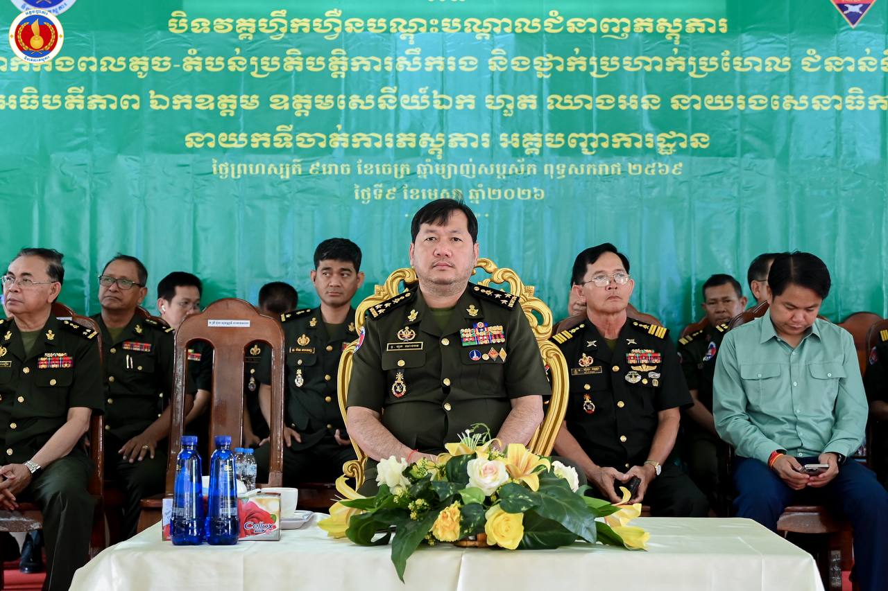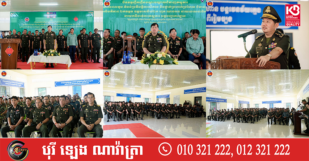 (ព្រៃវែង)៖ ឧត្តមសេនីយ៍ឯក ហួត ឈាងអន នាយរងសេនាធិការចម្រុះ នាយកទីចាត់ការភស្តុភារ អគ្គបញ្ជាការ តំណាងដ៏ខ្ពង់ខ្ពស់នាយឧត្ដមសេនីយ៍ វង្ស ពិសេន អគ្គមេបញ្ជាការនៃកងយោធពលខេមរភូមិន្ទ បានអញ្ជើញជាអធិបតីក្នុងពិធីបិទវគ្គហ្វឹកហ្វឺនបណ្តុះបណ្តាលជំនាញភស្តុភារ ថ្នាក់កងពលតូច តំបន់ប្រតិបត្តិការសឹករង និងថ្នាក់ប្រហាក់ប្រហែល ជំនាន់ទី១ ឆ្នាំ២០២៥ នៅសាលាភស្តុភារ និងដឹកជញ្ជូន (ភ្នំឈើកាច់)។
