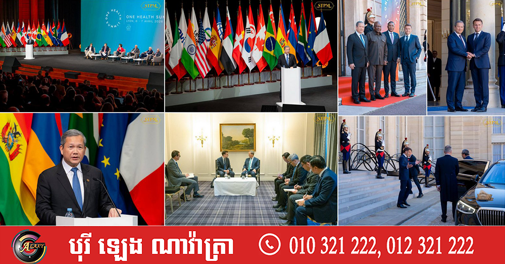 ក្នុងកិច្ចប្រជុំកំពូលស្តីពីសុខភាពតែមួយ ដែលប្រារព្ធឡើងនៅទីក្រុងលីយ៉ុង កាលពីថ្ងៃទី៧ ខែមេសា ឆ្នាំ២០២៦ មេដឹកនាំនៃបណ្តាប្រទេស និងអង្គការអន្តរជាតិនានា ត្រូវបានផ្តល់ឱកាសឱ្យឡើងចែករំលែកទស្សនទានគន្លឹះ ដើម្បីចូលរួមចំណែកដោះស្រាយបញ្ហាសុខភាពជាសកល។ សម្តេចនាយករដ្ឋមន្រ្តីកម្ពុជា ក៏ទទួលបានឱកាសឡើងថ្លែងសុន្ទរកថាគន្លឹះ និងចែករំលែកទស្សនទានលើបញ្ហាសុខភាពសកលលោកផងដែរ។ សម្តេចបានចូលរួមកិច្ចពិភាក្សាក្រោមប្រធានបទចំនួន៣ រួមមាន៖ ១.អភិបាលកិច្ច និងវិទ្យាសាស្ត្រ, ២.ជំងឺឆ្លង និង៣. ជំងឺមិនឆ្លងថែមទៀត។ សម្តេចក៏បានគូសរំលេចពីការប្តេជ្ញាចិត្តរបស់រាជរដ្ឋាភិបាលកម្ពុជា ក្នុងការចូលរួមដោះស្រាយបញ្ហាសុខភាពសកល ផងដែរ៕