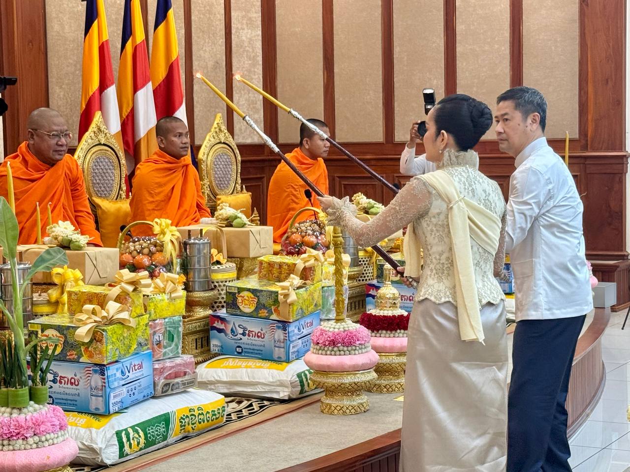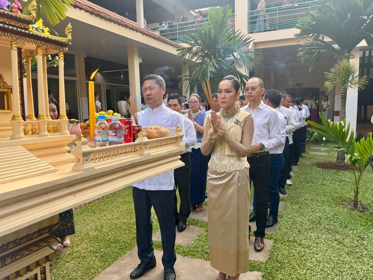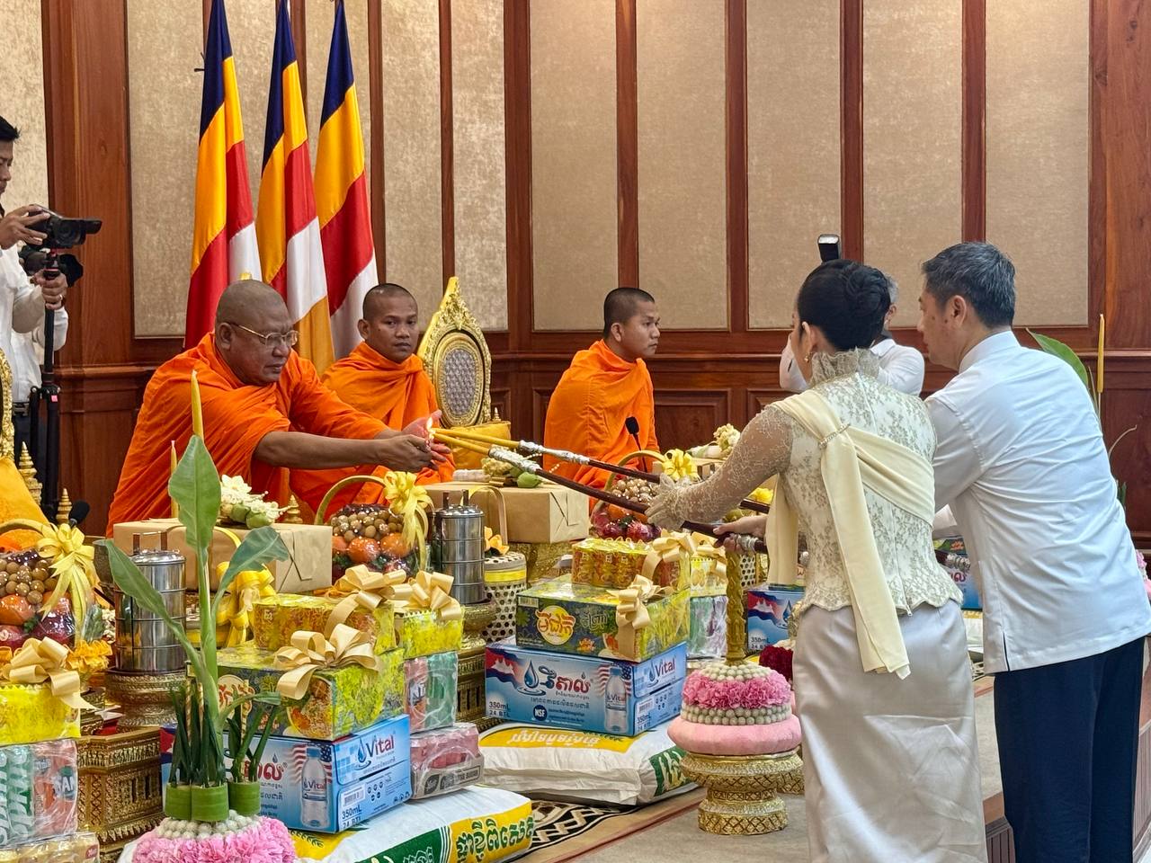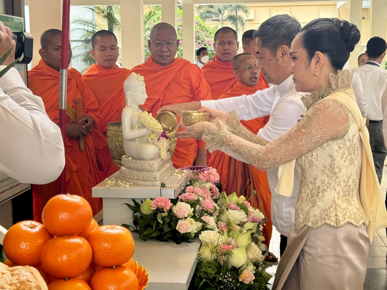 (ភ្នំពេញ)៖ មន្ទីរពេទ្យកាល់ម៉ែត នៅថ្ងៃព្រហស្បតិ៍ ទី០៩ ខែមេសា ឆ្នាំ២០២៦ បានរៀបចំពិធីសូត្រមន្តចម្រើនព្រះបរិត្ត ដើម្បីអបអរសាទរឆ្នាំថ្មីប្រពៃណីជាតិ ឆ្នាំមមី អដ្ឋស័ក ពុទ្ធសករាជ ២៥៧០ ដែលនឹងឈានចូលមកដល់នាពេលខាងមុខ ដើម្បីបណ្ដេញនូវឧបទ្រពពីឆ្នាំចាស់ ប្រោះព្រំលើករាសី នាំសិរីសួស្ដីឆ្នាំថ្មី ជូនដល់ថ្នាក់ដឹកនាំ មន្ត្រី បុគ្គលិកនៃមន្ទីរពេទ្យ និងប្រជាជនកម្ពុជាទូទាំងប្រទេស។