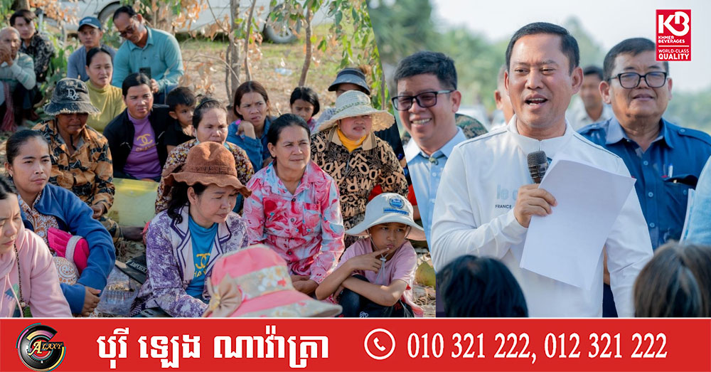 (តាកែវ)៖ លោក វ៉ី សំណាង អភិបាលខេត្តតាកែវ នៅសៀលថ្ងៃទី៨ ខែមេសា ឆ្នាំ២០២៦ បានចុះជួបសំណេះសំណាល និងដោះស្រាយបញ្ហាប្រឈមដោយផ្ទាល់ជូនប្រជាពលរដ្ឋចំនួន១២៣គ្រួសារ ដែលរងផលប៉ះពាល់ពីគម្រោង «ព្រែកជីកហ្វូណនតេជោ» ស្ថិតក្នុងឃុំធ្លក ស្រុកទ្រាំង ខេត្តតាកែវ។