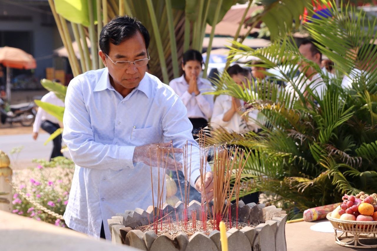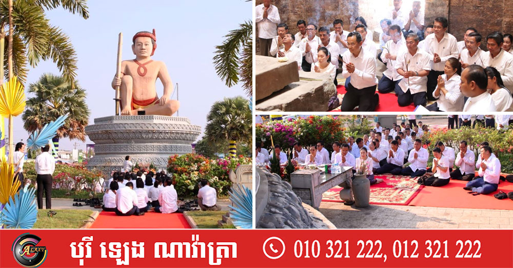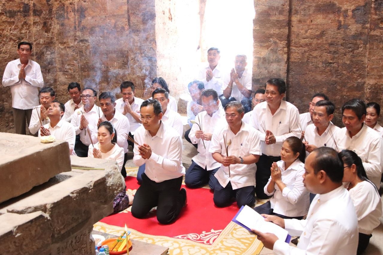 (កំពង់ធំ)៖ លោក ដៀប ពីរី ប្រធានក្រុមប្រឹក្សាខេត្តកំពង់ធំ និងលោក នួន ផារ័ត្ន អភិបាលខេត្ត និងលោកស្រី សមាជិកក្រុមប្រឹក្សាខេត្ត កងកម្លាំងទាំង៣ ប្រធានមន្ទីរជុំវិញខេត្ត និងមន្ត្រីរាជការ បានអញ្ជើញបួងសួងចម្រើន សិរីសួស្តីសម្រាប់ព្រឹត្តិការណ៍សង្ក្រាន្តកំពង់ធំ ឆ្នាំ២០២៦ នៅទីតាំងលោកតាឥ លោកតាក្រហមក ភ្នំសន្ទុក លោកតាអាចារ្យលាក់ ដាវដែកកំពង់ស្វាយ និងនៅប្រាសាទសំបូរព្រៃគុក ខេត្តកំពង់ធំ ថ្ងៃទី០៩ ខែមេសា ឆ្នាំ២០២៦។
