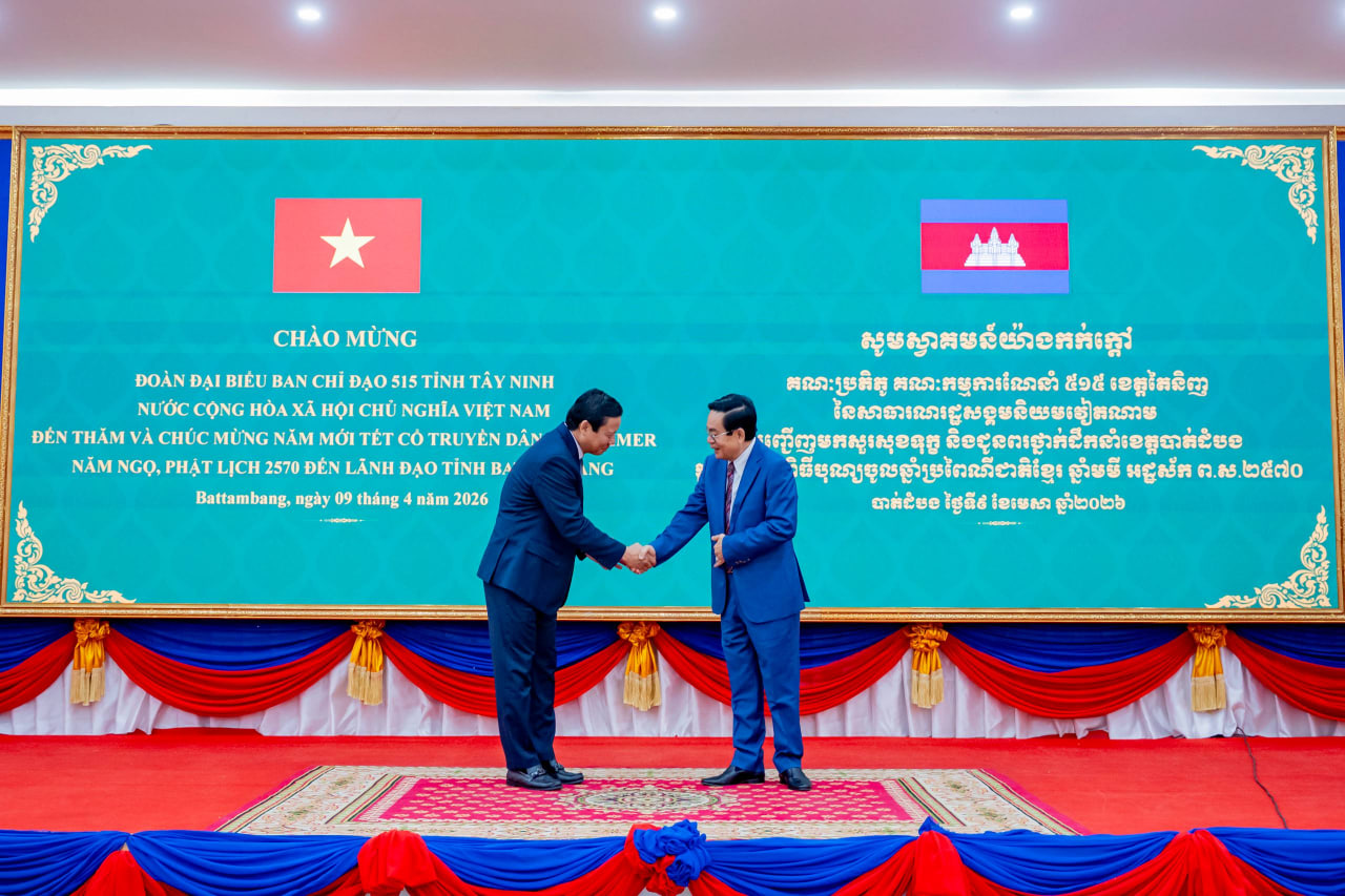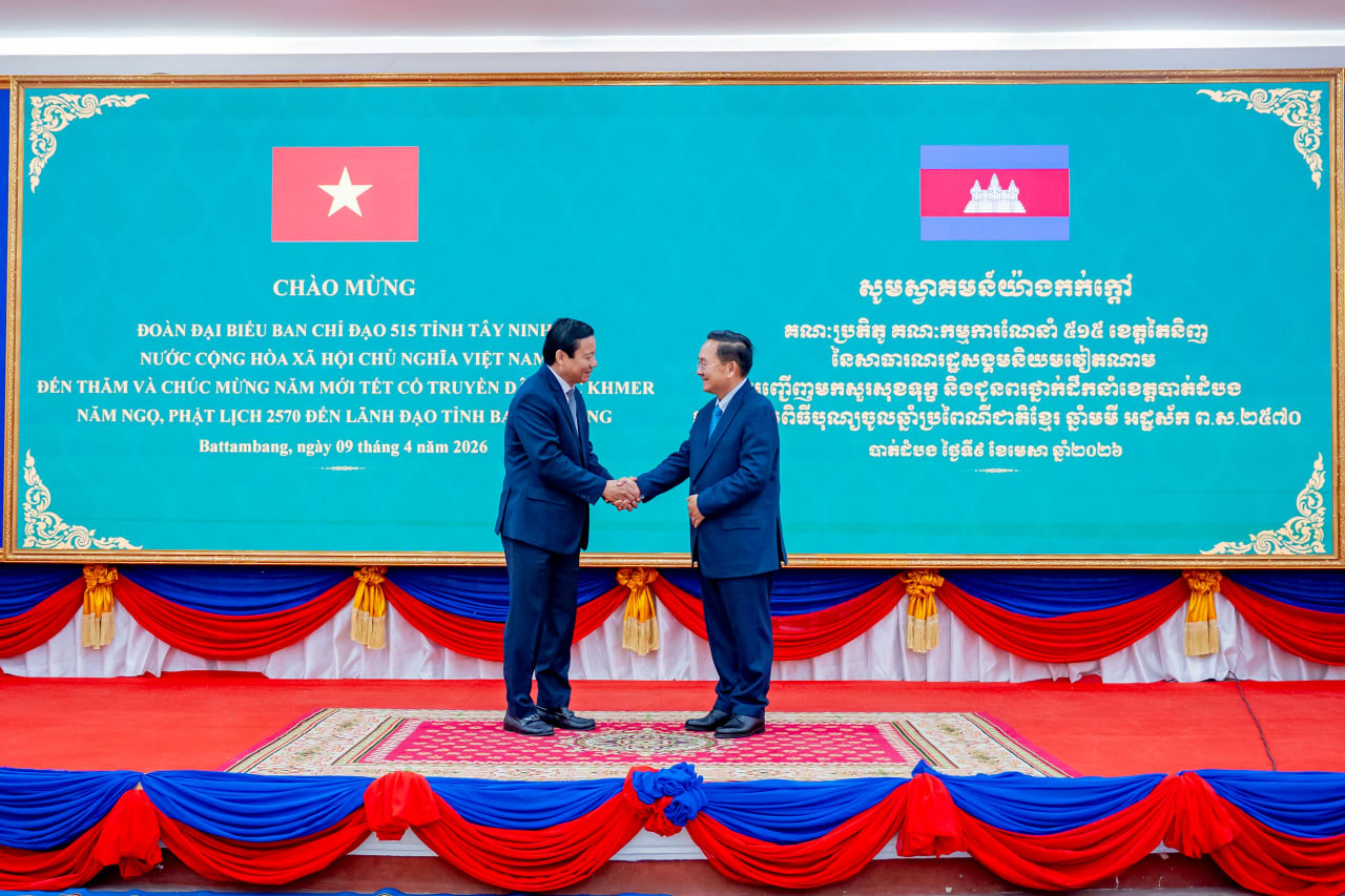 ថ្នាក់ដឹកនាំខេត្តតៃនិញ វៀតណាម អញ្ជើញសួរសុខទុក្ខ និងជូនពរថ្នាក់ដឹកនាំខេត្តបាត់ដំបង ក្នុងឱកាសនៃពិធីបុណ្យចូលឆ្នាំថ្មីប្រពៃណីជាតិខ្មែរ