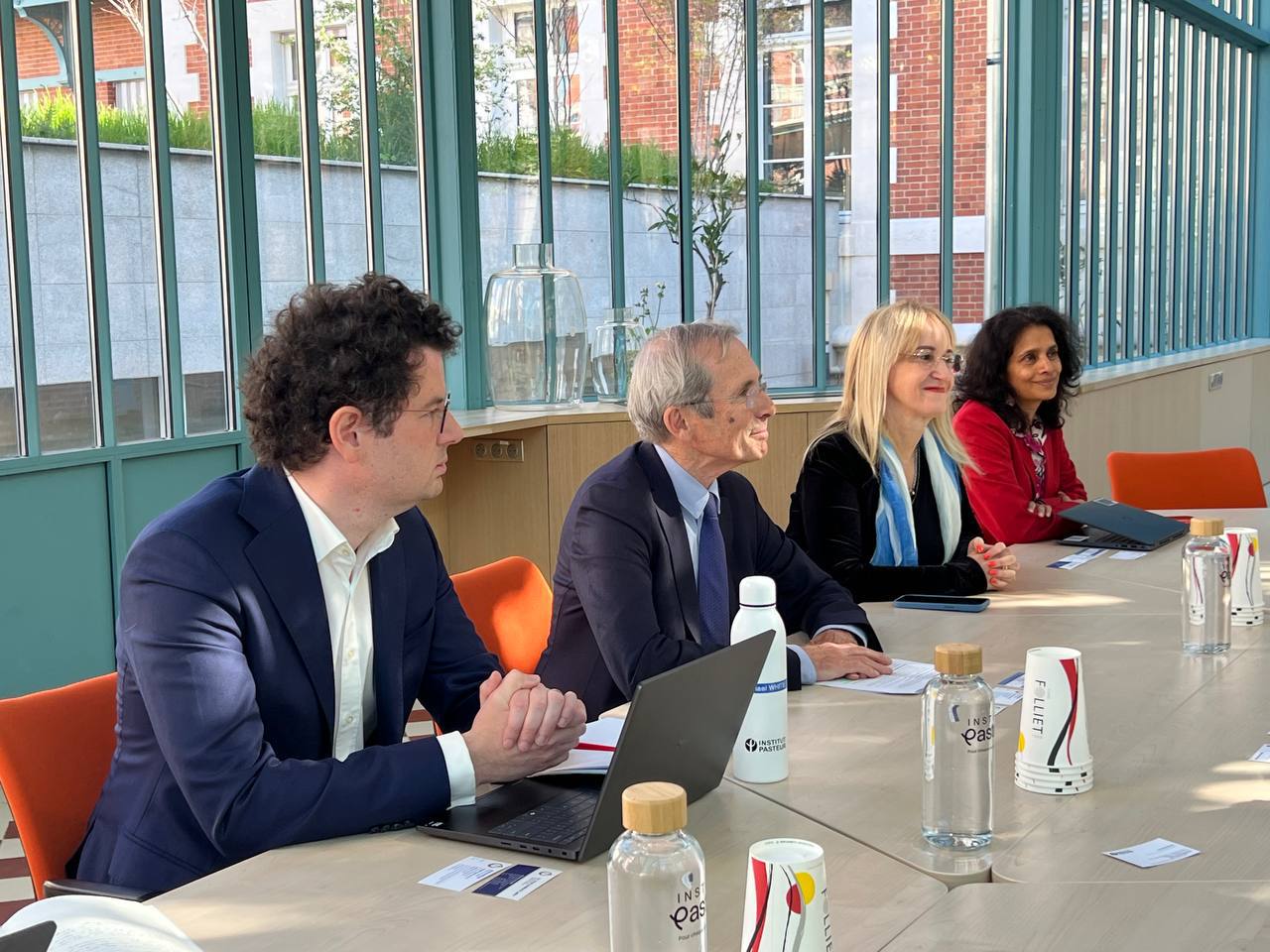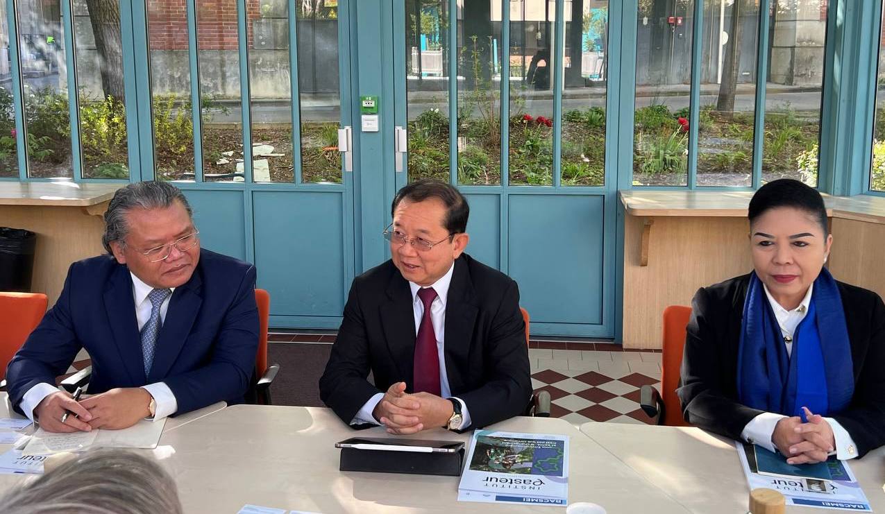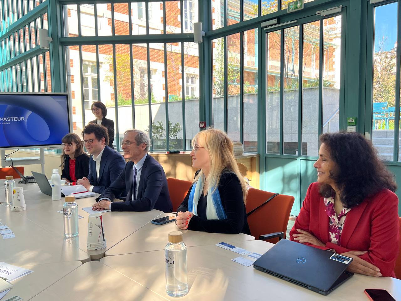 ដោយគណ:ប្រតិភូបានទទួលការស្វាគមន៍ ដោយលោក អុីវ សាំងហ្សួរ (M. Yves Saint-Geours ) ប្រធានក្រុមប្រឹក្សាភិបាល លោកស្រីសាស្ត្រាចារ្យ យ៉ាសមីន បែលកេដ (Pr Yasmine BELKAID) អគ្គនាយិការ និង លោកស្រី អូដែត តូម៉េសគុយអាត់តូ (Mme Odette Tomescu-Hatto) ទទួលទំនាក់ទំនងអន្តរជាតិនៃវិទ្យាស្ថានប៉ាស្ទ័រទីក្រុងប៉ារីស រួមទាំងសហការី និងអ្នកស្រាវជ្រាវវិទ្យាសាស្ត្រ នៅរសៀលថ្ងៃទី៨ ខែមេសា ឆ្នាំ២០២៦។