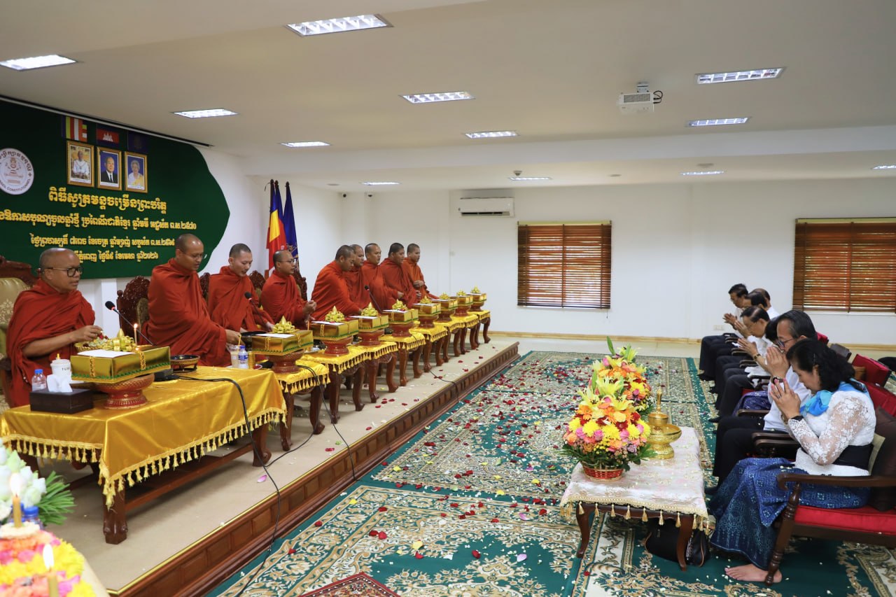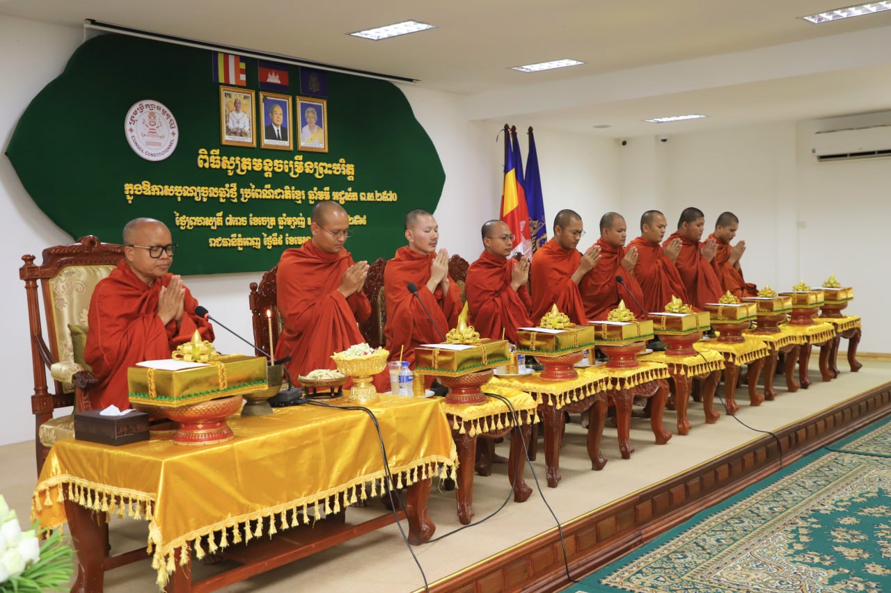 (ភ្នំពេញ)៖ លោក ហ៉ី សោភា ប្រធានក្រុមប្រឹក្សាធម្មនុញ្ញ និងសមាជិក សមាជិកាក្រុមប្រឹក្សាធម្មនុញ្ញ នៅរសៀលថ្ងៃទី៩ ខែមេសា ឆ្នាំ២០២៦ បាននិមន្ត សម្តេចព្រះធម្មលិខិតបណ្ឌិត សៅ ចន្ទថុល្ល ព្រះរាជាគណៈថ្នាក់ឯក និងជាឧត្តមប្រឹក្សាគណៈមហានិកាយនៃព្រះរាជាណាចក្រកម្ពុជា សូត្រមន្តចម្រើនព្រះបរិត្ត ក្នុងឱកាសបុណ្យចូលឆ្នាំថ្មី ប្រពៃណីជាតិ នៅវិមានសនៃក្រុមប្រឹក្សាធម្មនុញ្ញ។