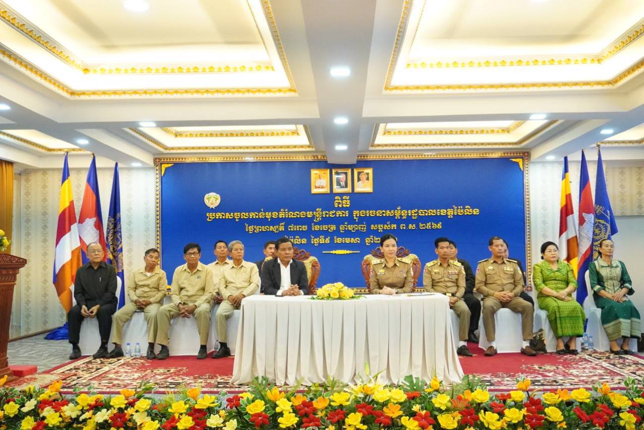 (ប៉ៃលិន)៖ រដ្ឋបាលខេត្តប៉ៃលិន នៅរសៀលថ្ងៃទី០៩ ខែមេសា ឆ្នាំ២០២៦ បានប្រកាសចូលកាន់មុខតំណែងថ្មី ដល់មន្ត្រីរាជការក្នុងរចនាសម័្ពន្ធរដ្ឋបាលខេត្តចំនួន២៣រូប ស្ថិតក្រោមអធិបតីភាពលោក ជា ចានឌិន ប្រធានក្រុម ប្រឹក្សាខេត្ត និងលោកស្រីបណ្ឌិត បាន ស្រីមុំ អភិបាលខេត្តប៉ៃលិន។
