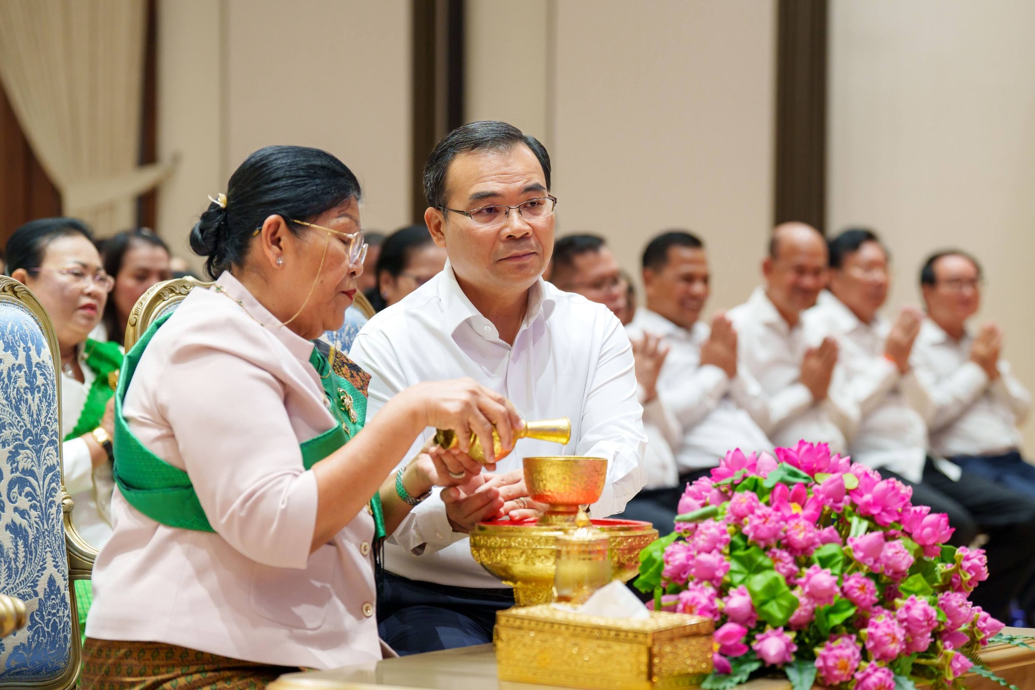 ក្នុងឱកាសនេះ លោករដ្ឋមន្ត្រី ព្រមទាំងថ្នាក់ដឹកនាំ និងមន្ត្រីរាជការទាំងអស់ ប្រកបដោយសទ្ធាជ្រះថ្លា វេរប្រគេននូវទេយ្យវត្ថុ និងបវារណាចតុបច្ច័យចំពោះព្រះសង្ឃ ដើម្បីជាកិច្ចបំពេញកុសល និងបួងសួងសុំសេចក្តីសុខចម្រើន ជោគជ័យលើគ្រប់ភារកិច្ច ជូនដល់ថ្នាក់ដឹកនាំ មន្ត្រីរាជការ និងបុគ្គលិកទាំងអស់ ក៏ដូចជាប្រជាពលរដ្ឋខ្មែរគ្រប់រូប ជានិច្ចនិរន្តរ៍តរៀងទៅ។