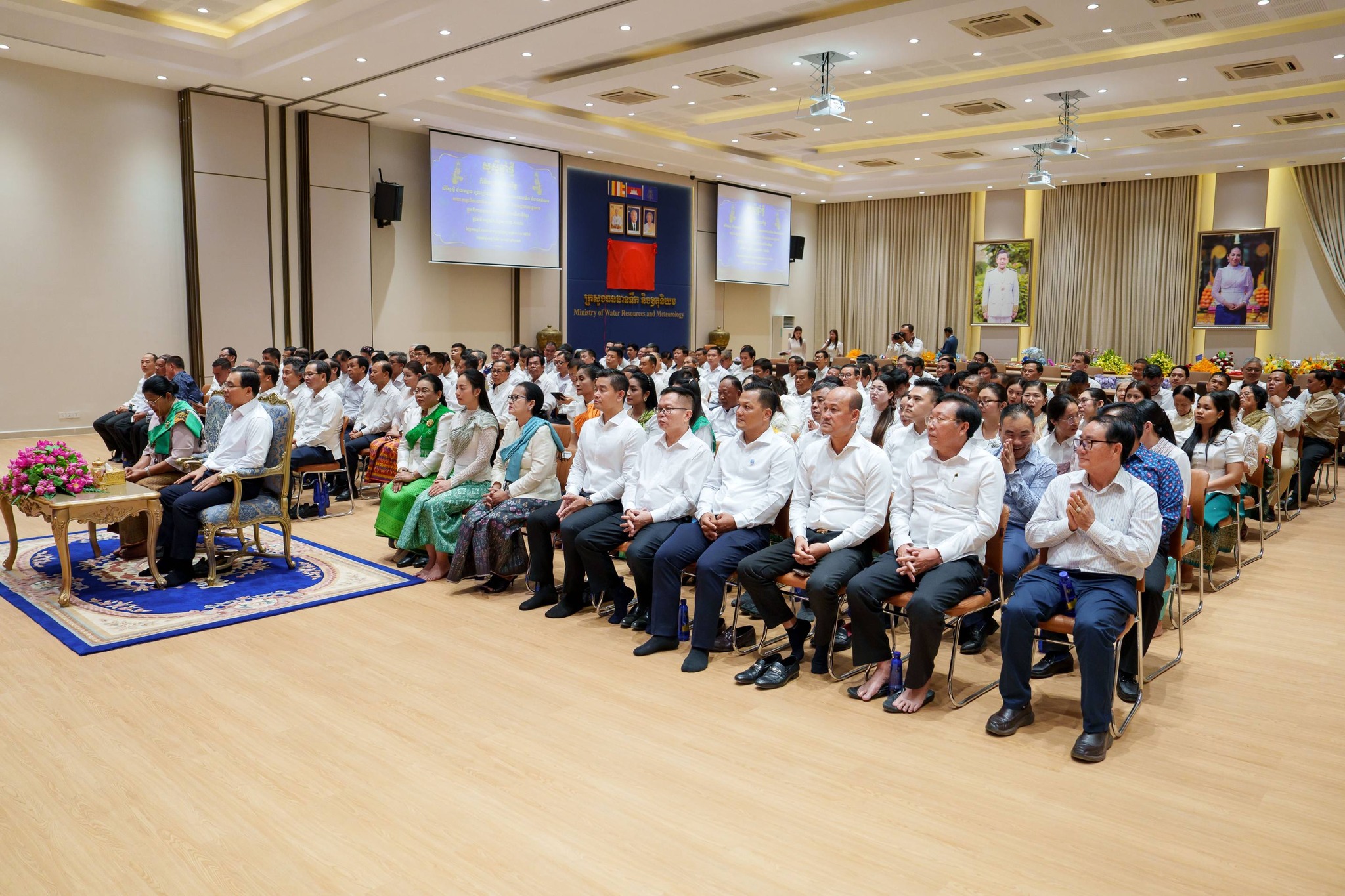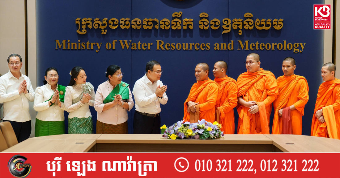 (ភ្នំពេញ)៖ លោក ថោ ជេដ្ឋា រដ្ឋមន្ត្រីក្រសួងធនធានទឹក និងឧតុនិយម នារសៀលថ្ងៃទី៩ ខែមេសា ឆ្នាំ២០២៦ បានអញ្ជើញដឹកនាំថ្នាក់ដឹកនាំ និងមន្ត្រីរាជការគ្រប់លំដាប់ថ្នាក់ រៀបចំពិធីសូត្រមន្តចម្រើនព្រះបរិត្ត ដើម្បីសិរីសួស្តី ជ័យមង្គល ជូនដល់គ្រួសារក្រសួងធនធានទឹក និងឧតុនិយម គណៈកម្មាធិការជាតិទន្លេមេគង្គកម្ពុជា និងអាជ្ញាធរទន្លេសាប ក្នុងឱកាសពិធីបុណ្យចូលឆ្នាំថ្មីប្រពៃណីជាតិខ្មែរ ដែលប្រារព្ធឡើងនៅទីស្តីការក្រសួង ដោយមានវត្តមានចូលរួមពីអគ្គមហាឧបាសិកាពុទ្ធសាសនូបត្ថម្ភក៏ ពហុវុឌ្ឍា ម៉ែន នារីវុឌ្ឍី ហូសិទ្ធី។
