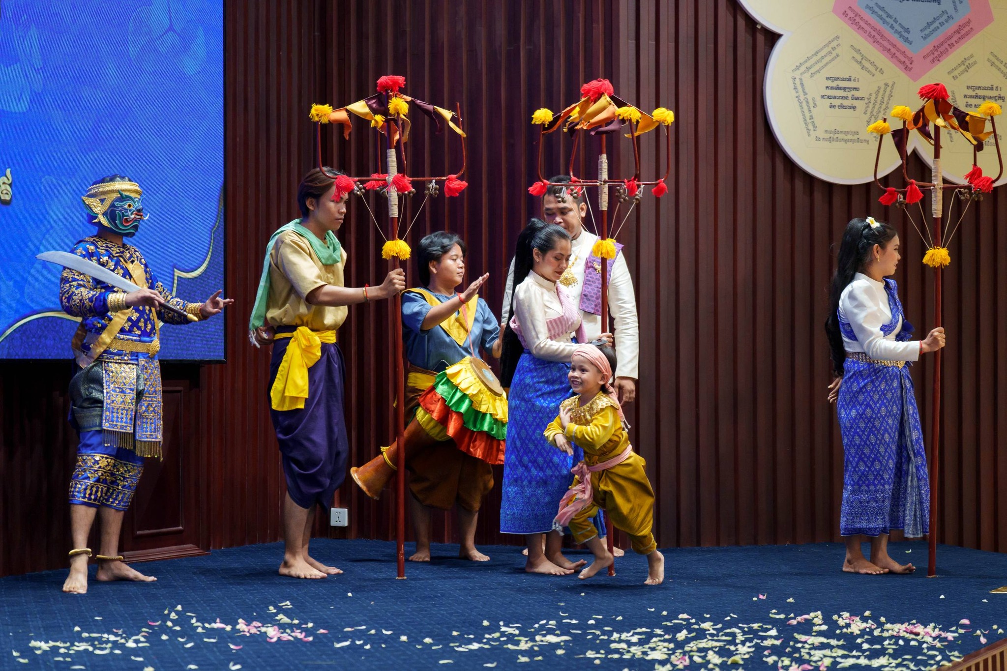 ទន្ទឹមនឹងនេះ នៅក្នុងពិធីក៏មានការសម្ដែងសិល្បៈប្រពៃណី រួមមាន៖ របាំជូនពរ របាំត្រុដិ និងការលេងឆៃយ៉ាំយ៉ាងកងរំពង ដើម្បីបណ្តេញនូវឧបទ្រពចង្រៃក្នុងឆ្នាំចាស់ និងទទួលយកសិរីសួស្តីបវរមហាប្រសើរក្នុងឆ្នាំថ្មី។ ក្រោយបញ្ចប់កិច្ចតាមបែបសាសនា និងសិល្បៈ ក៏មានការរៀបចំកម្មវិធីពិសានំបញ្ចុកសាមគ្គី ដើម្បីបង្កើននូវភាពស្និទ្ធស្នាល និងសាមគ្គីភាពផ្ទៃក្នុងឱ្យកាន់តែរឹងមាំផងដែរ។