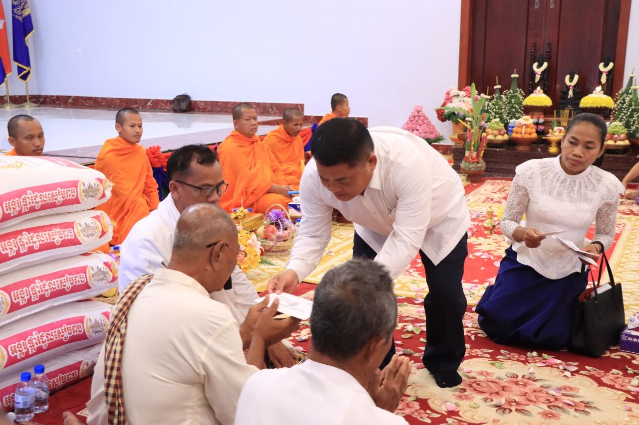 លោកស្នងការ បានប្រគេននូវអង្ករចំនួន ៥បេ ភេសជ្ជៈចំនួន ២៥កេស និងបច្ច័យមួយចំនួន ដើម្បីចូលរួមកសាងសមិទ្ធផលនានា ក្នុងទីវត្តអារាម និងផ្គត់ផ្គង់ទំនុកបម្រុង ដល់ព្រះសង្ឃសមណសិស្ស នៅវត្តមុន្នីរង្សី ហៅវត្តថ្មី ដោយសេចក្តីសោមនស្សជ្រះថ្លាយ៉ាងក្រៃលែង។