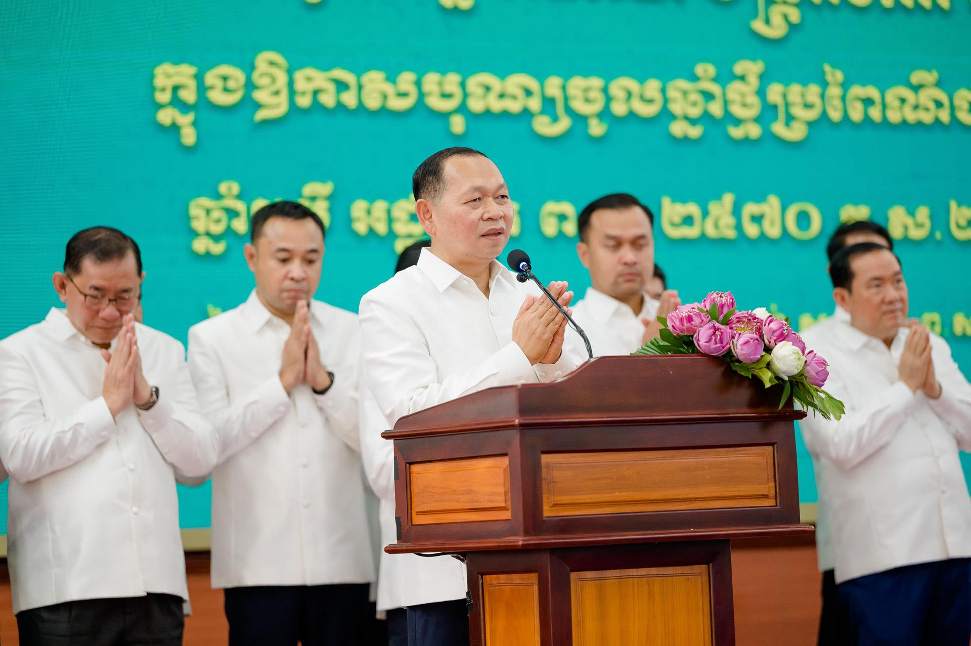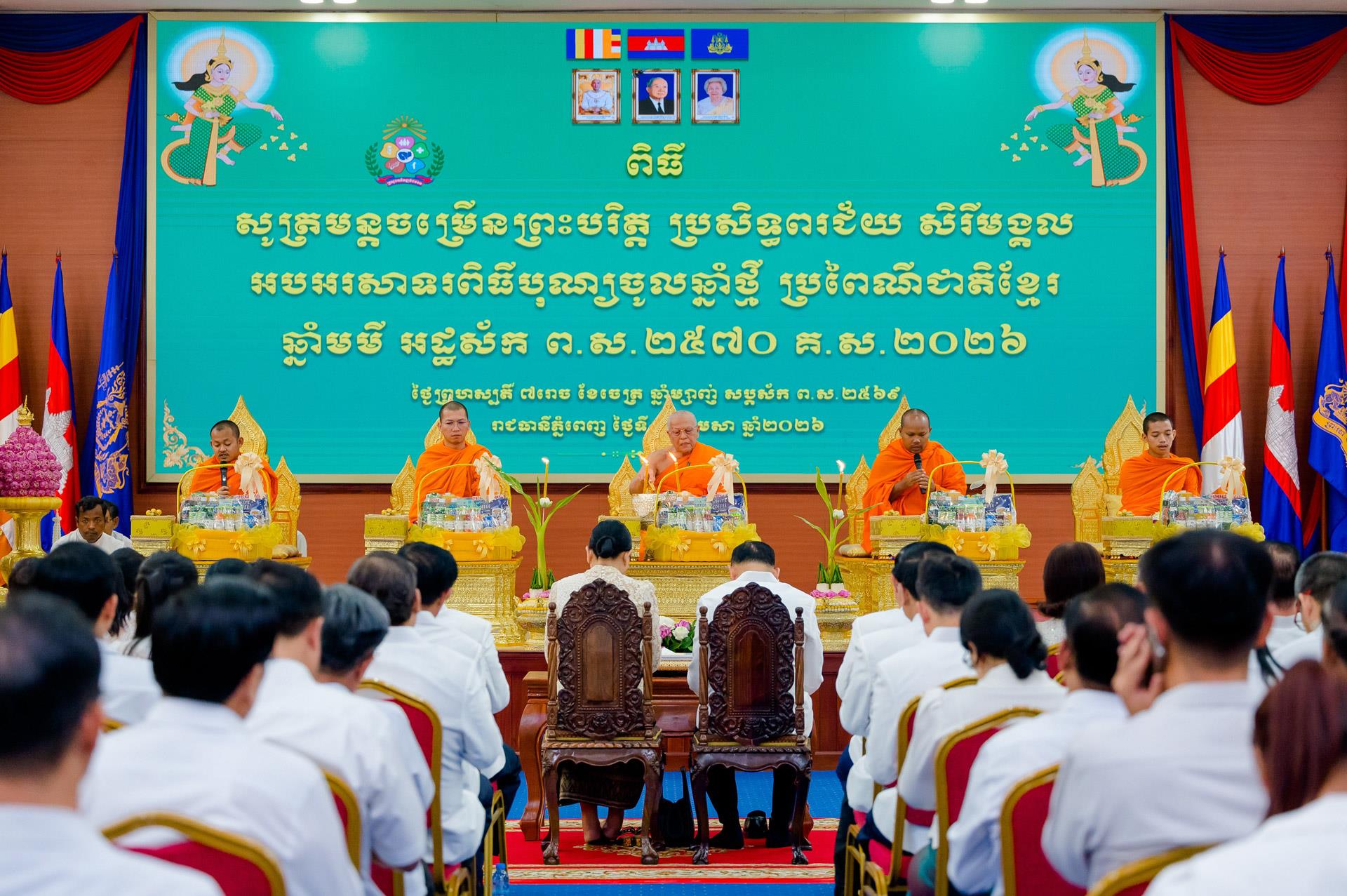 (ភ្នំពេញ)៖ លោក ឆាយ ឫទ្ធិសែន រដ្ឋមន្ត្រីក្រសួងអភិវឌ្ឍន៍បទ និងលោកស្រី ព្រមទាំងថ្នាក់ដឹកនាំក្រសួង ព្រមទាំងមន្ដ្រីរាជការគ្រប់លំដាប់ថ្នាក់ នារសៀលថ្ងៃទី៩ ខែមេសា ឆ្នាំ២០២៦ បានរៀបចំពិធីសូត្រមន្តចម្រើនព្រះបរិត្ត ប្រសិទ្ធពរជ័យ សិរីសួស្ដី ជ័យមង្គល វិបុលសុខគ្រប់ប្រការ ជាកិច្ចជូនដំណើរឆ្នាំចាស់ និងទទួលអំណរសាទរឆ្នាំថ្មីប្រពៃណីជាតិខ្មែរ ឆ្នាំមមី អដ្ឋស័ក ពុទ្ធសករាជ ២៥៧០ គ្រិស្ដសករាជ ២០២៦ នឹងឈានចូលដល់នៅថ្ងៃអង្គារ ១២រោច ខែចេត្រ ត្រូវនឹងថ្ងៃទី១៤ ខែមេសា ឆ្នាំ២០២៦ វេលាម៉ោង ១០ នឹង ៤៨នាទីព្រឹក ខាងមុខនេះ នៅទីស្តីការក្រសួងអភិវឌ្ឍន៍ជនបទ។