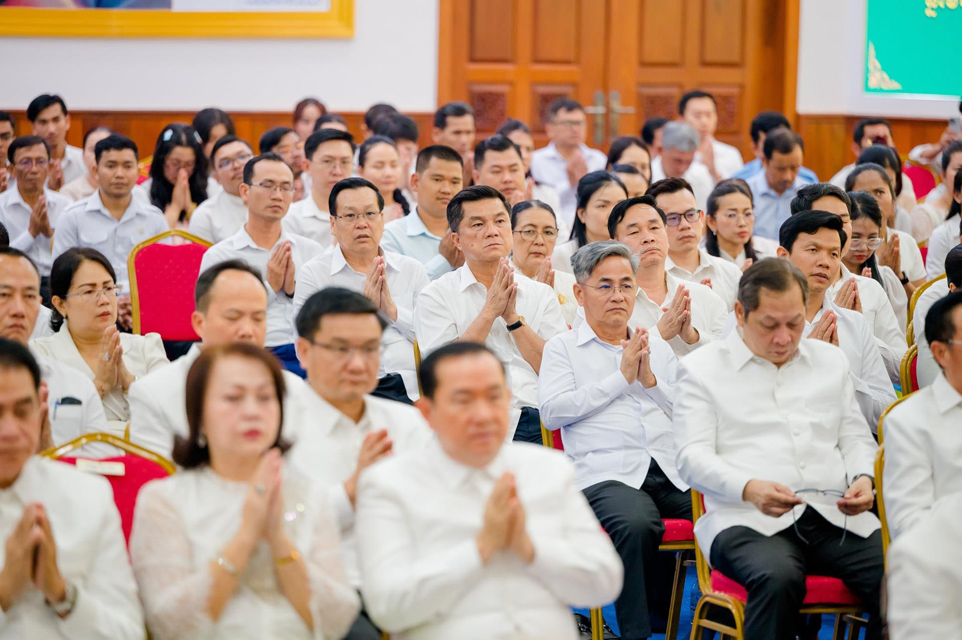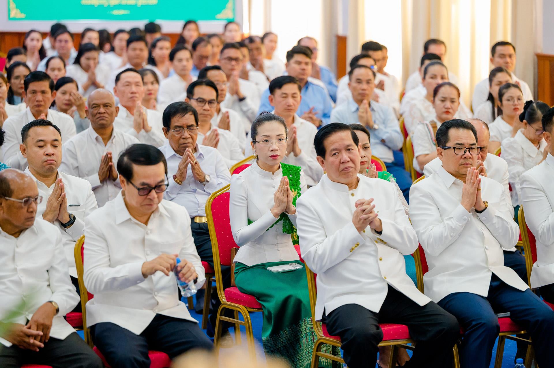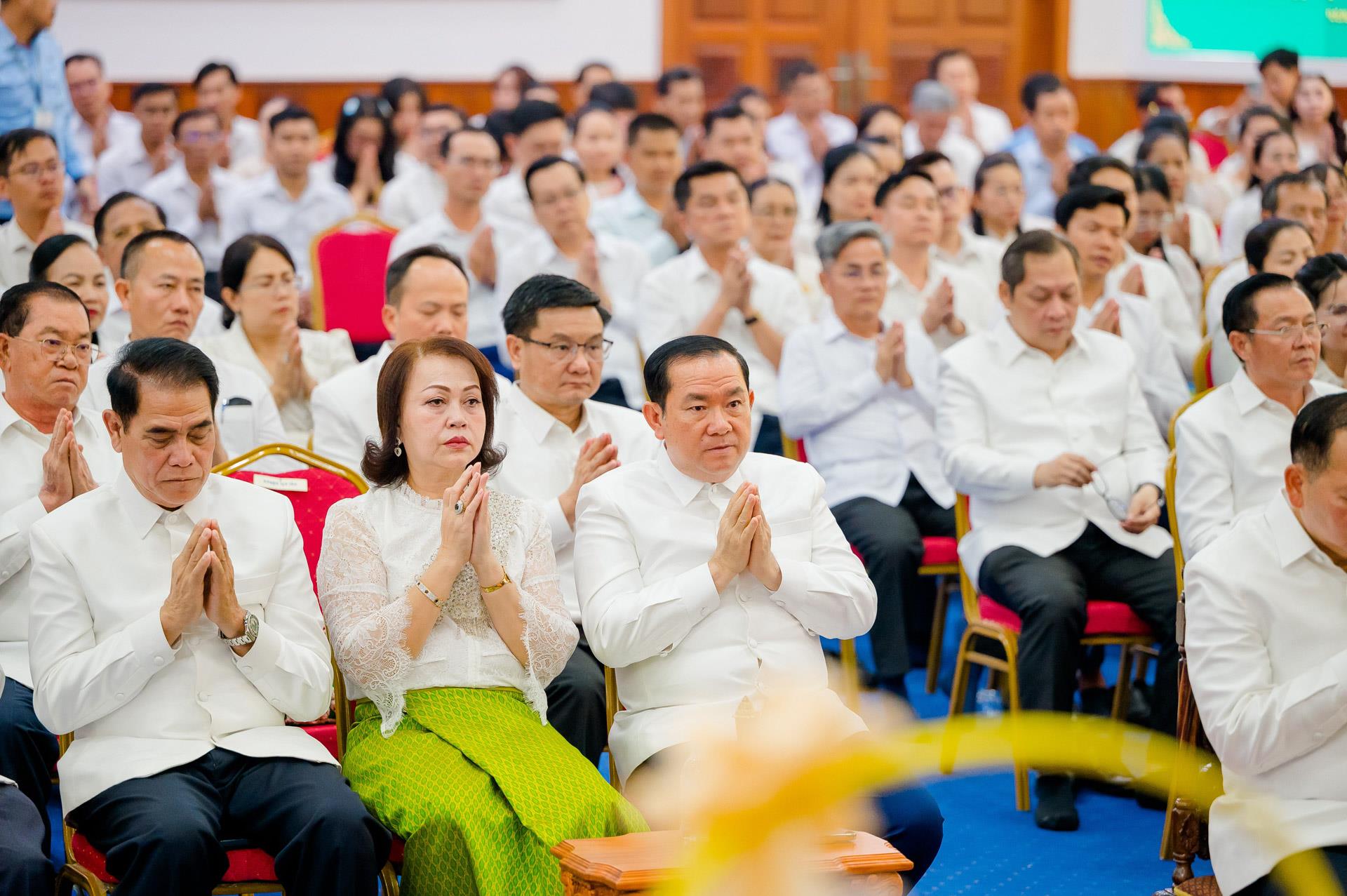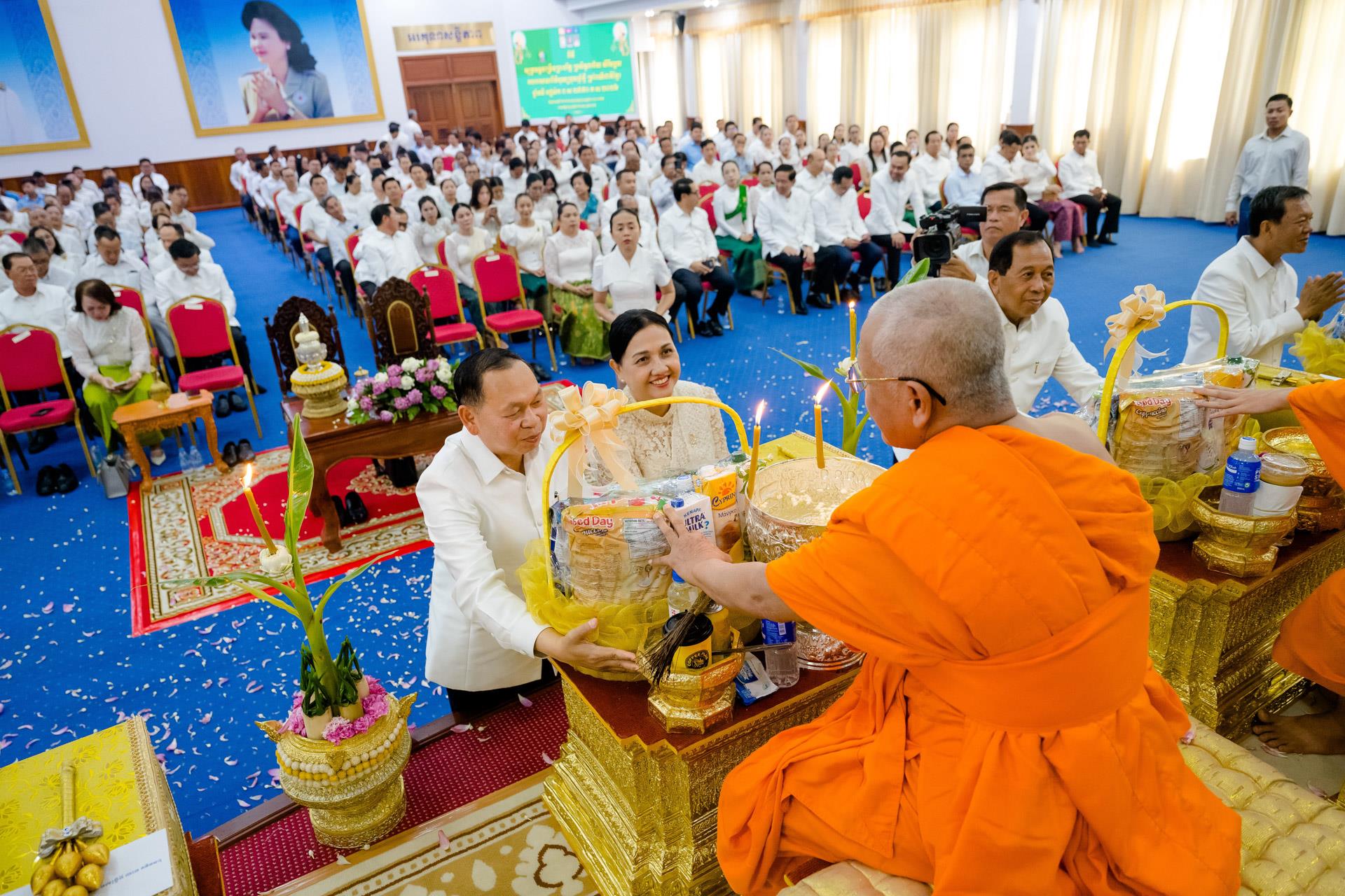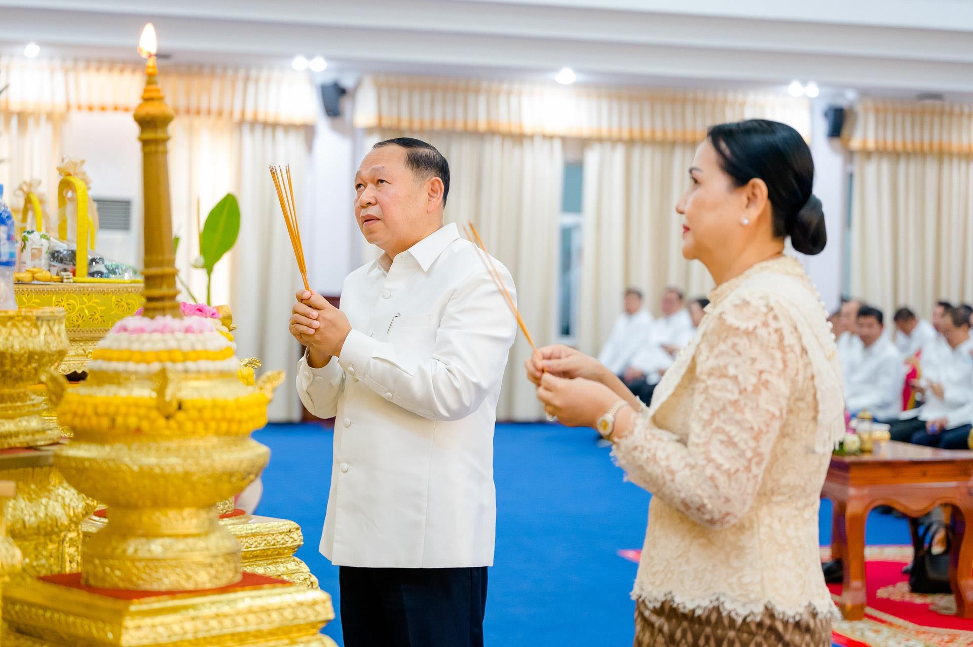 ក្នុងឱកាសនោះ លោករដ្ឋមន្ដ្រី និងលោកស្រី បានអញ្ជើញបូជាប្រទីប ផ្កាភ្ញី គ្រឿងសក្ការៈនានា ថ្វាយព្រះរតនត្រ័យ ដើម្បីជាការគោរពបូជាចំពោះព្រះពុទ្ធ ព្រះធម៌ ព្រះសង្ឃ ព្រមទាំងបាននិមន្តព្រះសង្ឃចម្រើនព្រះបរិត្ត ប្រសិទ្ធិពរជ័យ សិរីសួស្ដី ជ័យមង្គល វិបុលសុខគ្រប់ប្រការ ព្រមទាំងដើម្បីឧទ្ទិសកុសលជូនដល់បុព្វការីជន មាតាបិតា ជីដូនជីតា និងញាតកាទាំង៧សន្ដាន ដែលបានចែកឋានទៅកាន់បរលោកខាងមុខ ក៏ដូចជាវីរកងទ័ព វីរនគរបាល ដែលបានពលីជីវិត ក្នុងបុព្វហេតុការពារជាតិមាតុភូមិ។