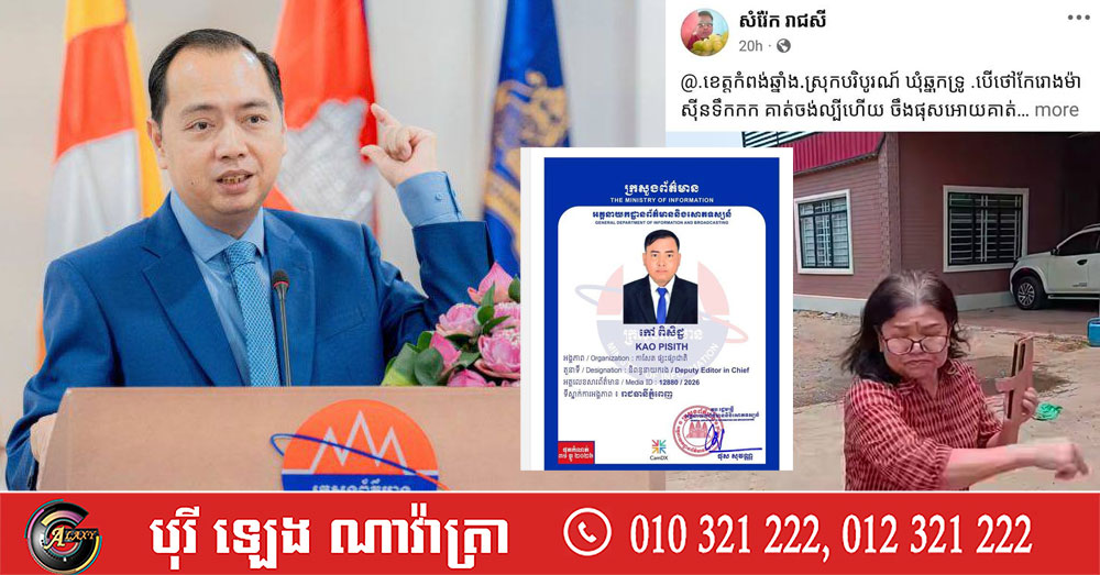 រដ្ឋមន្រ្តី នេត្រ ភក្រ្តា សម្រេចលុបសុពលភាពបណ្ណសម្គាល់ព័ត៌មាន លើអ្នកព័ត៌មានម្នាក់ ដែលប្រើឈ្មោះអ្នកកាសែត ទៅសុំលុយម្ចាស់សិប្បកម្មទឹកកកមួយកន្លែងនៅខេត្តកំពង់ឆ្នាំង