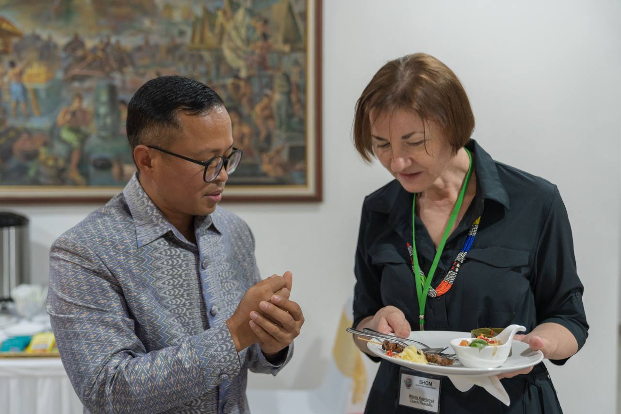 (ភ្នំពេញ)៖ លោក ទាន សំណាង ឯកអគ្គរាជទូតកម្ពុជា ប្រចាំសាធារណរដ្ឋឥណ្ឌូណេស៊ី និងលោកស្រី ស៊ឹម សុភាពនីឡា នៅព្រឹកថ្ងៃទី០៨ ខែមេសា ឆ្នាំ២០២៦ បានរៀបចំពិធីកាហ្វេពេលព្រឹក (Morning Coffee) ដើម្បីទទួលស្វាគមន៍ភរិយា/ស្វាមី ឯកអគ្គរាជ/រដ្ឋទូត និងប្រធានស្ថាប័នបេសកកម្ម ប្រចាំសាធារណរដ្ឋឥណ្ឌូណេស៊ី សរុបចំនួន ៣៦នាក់ នៅនិវេសនដ្ឋានឯកអគ្គរាជទូតកម្ពុជា នាទីក្រុងហ្សាការតា ក្នុង