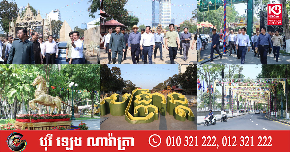 (ភ្នំពេញ)៖ នៅសល់តែ៤ថ្ងៃទៀតប៉ុណ្ណោះ ពិធីបុណ្យចូលឆ្នាំថ្មី ឆ្នាំមមី អដ្ឋស័ក ព.ស.២៥៧០ គ.ស.២០២៦ នឹងឈានមកដល់នាព្រឹកថ្ងៃទី១០ ខែមេសា ឆ្នាំ២០២៦នេះ លោក ឃួង ស្រេង អភិបាលរាជធានីភ្នំពេញ បានដឹកនាំមន្ត្រីជំនាញចុះពិនិត្យវឌ្ឍនភាពការងារតុបតែងលម្អសោភណ្ឌភាព នៅទីតាំងរមណីយដ្ឋានវប្បធម៌ប្រវត្តិសាស្ត្រវត្តភ្នំ ដែលកំពុងលេចរូបរាងជាបណ្តើរៗ ហើយត្រៀមរៀបចំព្រឹត្តិការណ៍ «នគរសង្ក្រាន្ត» ដើម្បីត្រៀមទទួលស្វាគមន៍ភ្ញៀវជាតិ និងអន្តរជាតិ នាឱកាសឆ្នាំថ្មីនេះ។