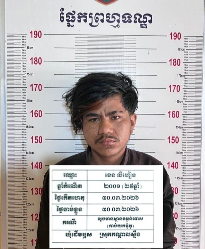 លោក ខា ដែនណា អ្នកនាំពាក្យអយ្យការអមសាលាដំបូងខេត្តកណ្ដាល និងលោក សូ សារិន អ្នកនាំពាក្យសាលាដំបងខេត្តកណ្ដាល បានបញ្ជាក់មកកាន់អ្នកយកព័ត៌មាន Fresh News ជនត្រូវចោទឈ្មោះ ខេន លីហៀង អាយុ២៥ឆ្នាំ ត្រូវបាននគរបាលឃាត់ខ្លួននៅភូមិត្រពាំងស្លា ឃុំព្រះនិពាន្វ ស្រុកគងពិសី ខេត្តកំពង់ស្ពឺ។